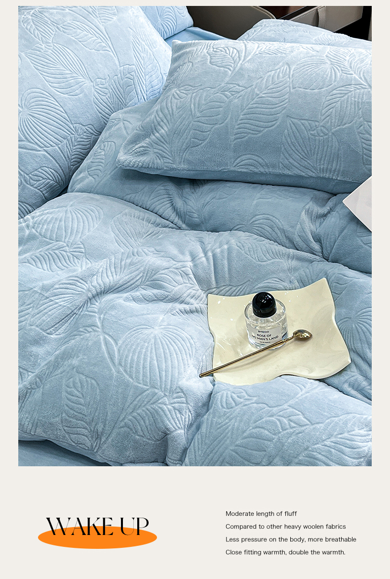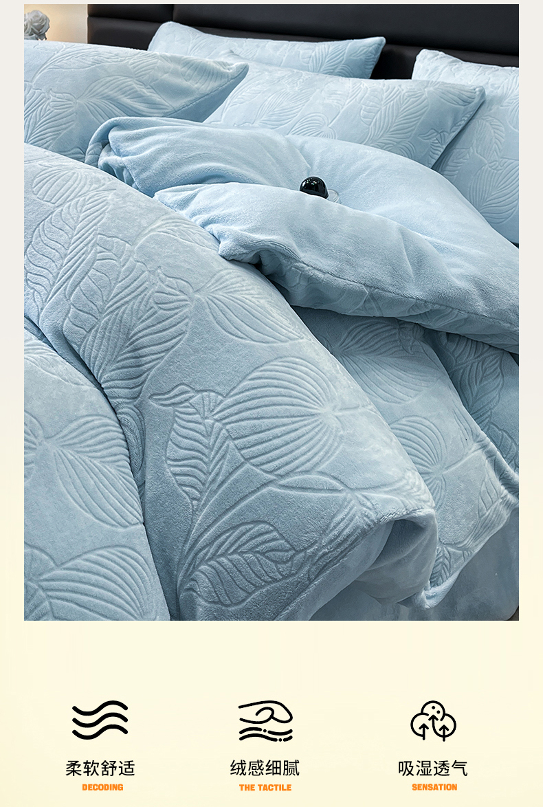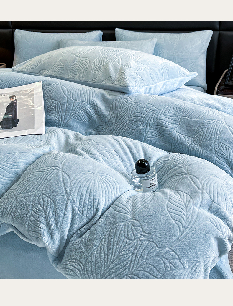 商品名称:星座家纺 2025新款牛奶绒雕花四件套 叶语-蓝