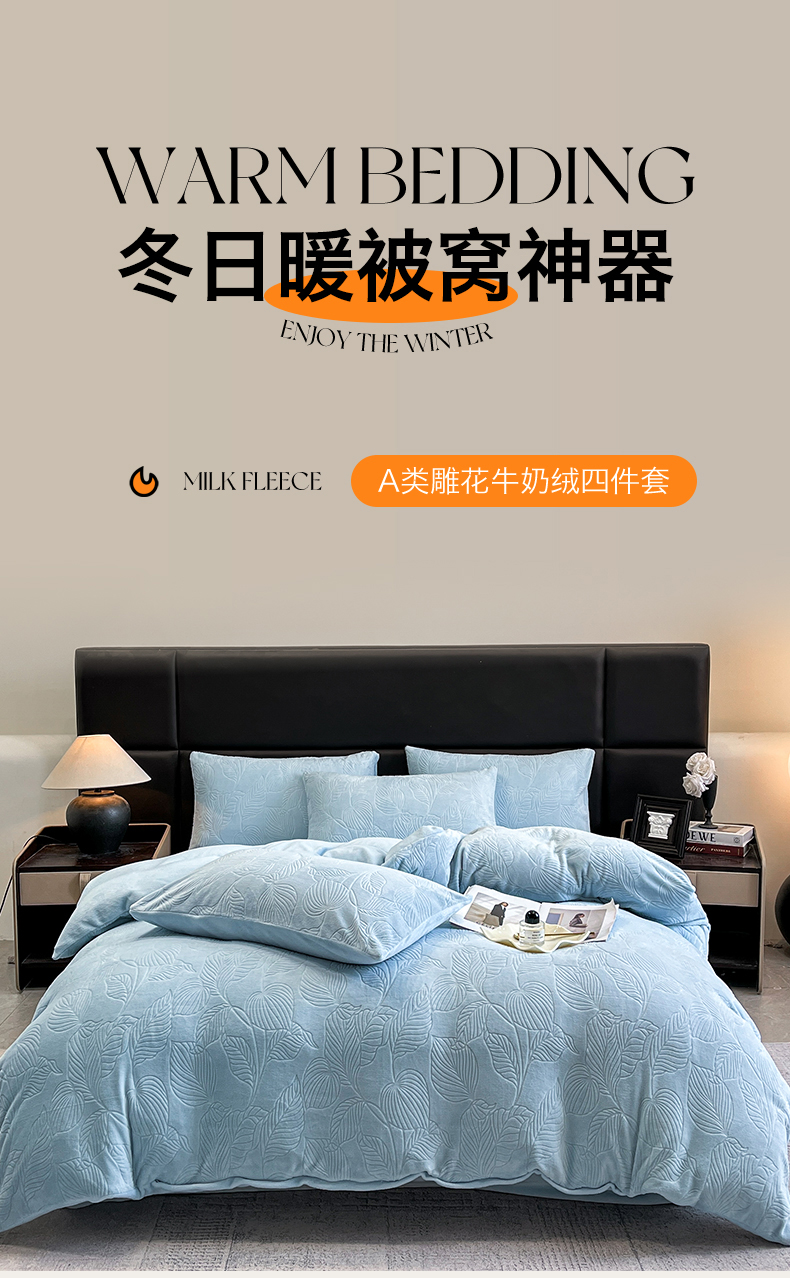 (总)星座家纺 2025新款轻奢牛奶绒四件套-极简系列,爱玛橙,冰雾蓝,蜜桃粉,绅士灰,朱砂红
