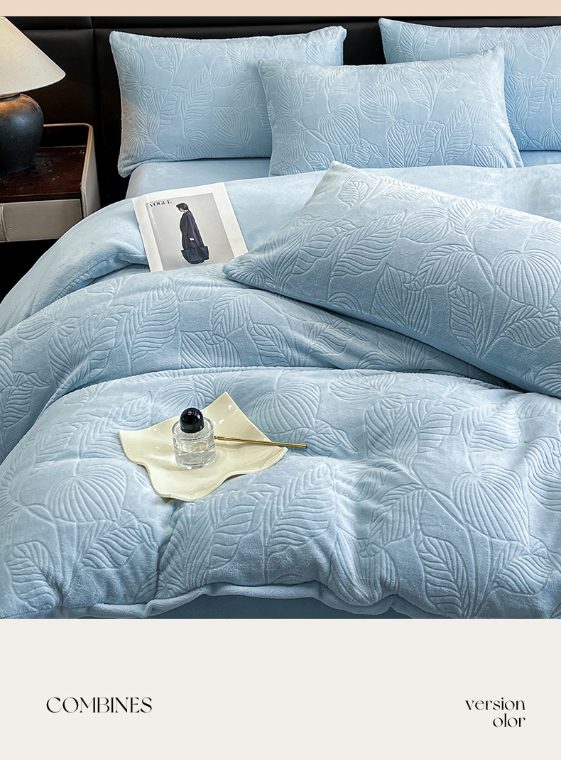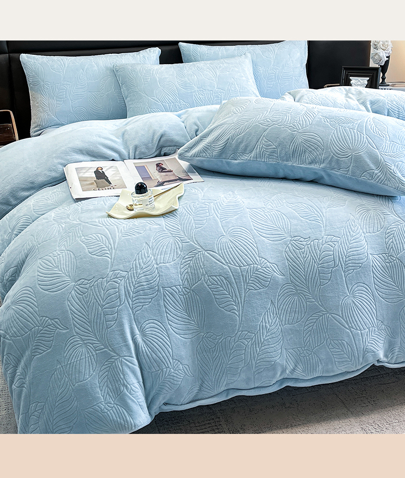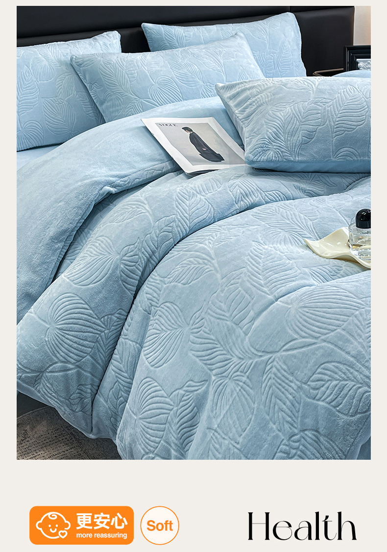星座家纺 2025新款牛奶绒雕花四件套 叶语-蓝