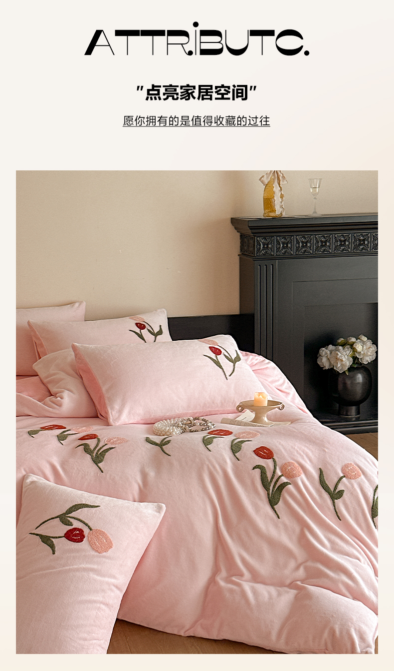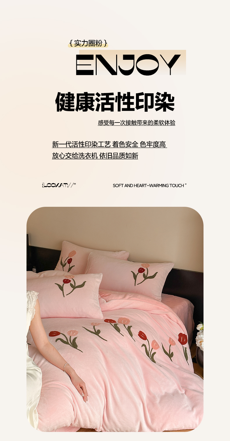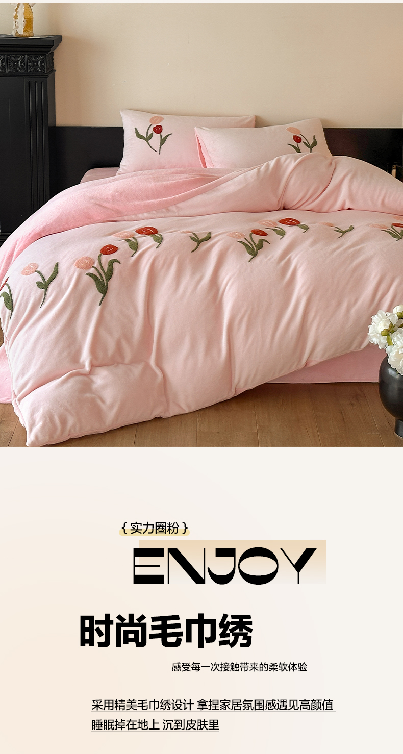 商品名称:如一 2025新款田园风毛巾绣牛奶绒四件套 郁香-粉粉