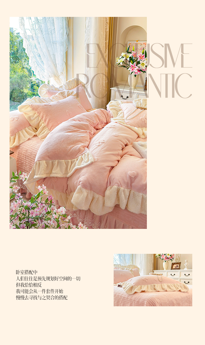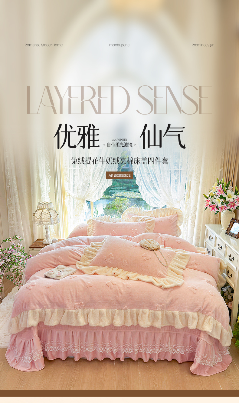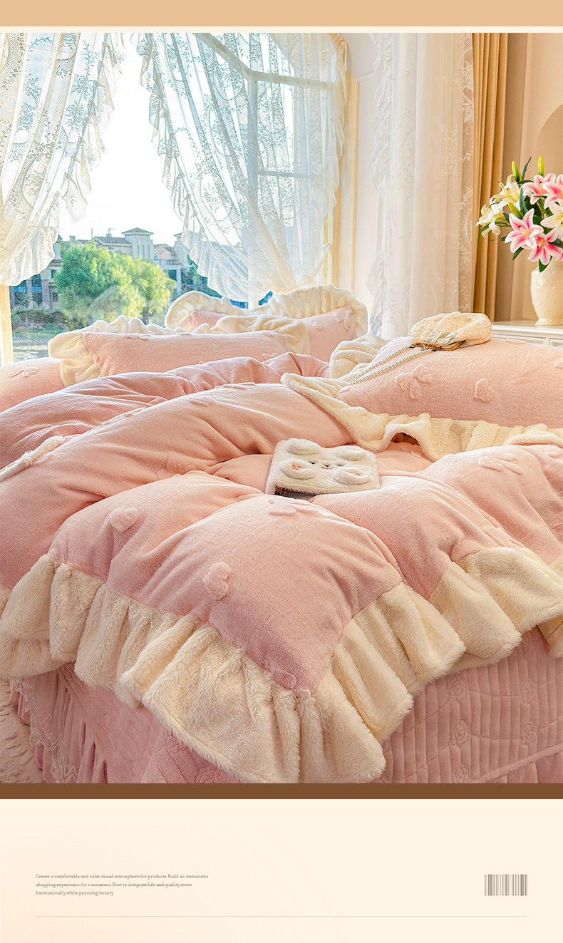 (总)宜凡家纺 2025新款兔绒提花牛奶绒夹棉床裙四件套,爱心 少女粉,爱心 粉紫,爱心 驼色,蝶舞 大红,蝶舞 米色,蝶舞 浅紫,蝶舞 玉色,简爱 苍青,简爱 豆沙紫,简爱 玉色,樱桃 苍青,樱桃 豆沙紫,樱桃 奶油白