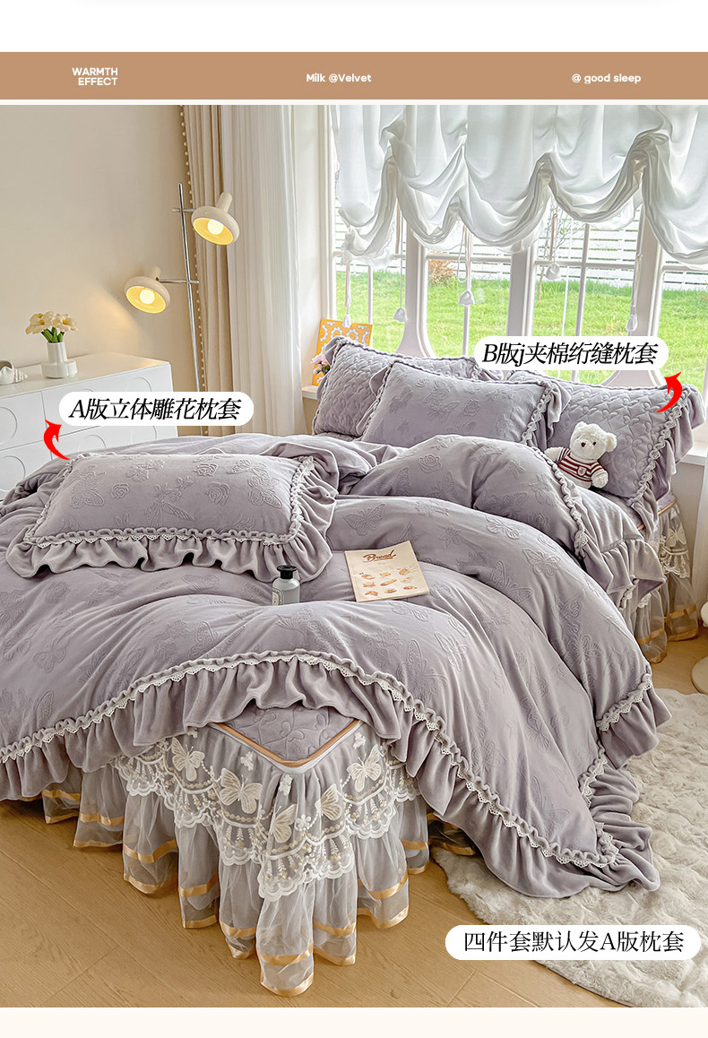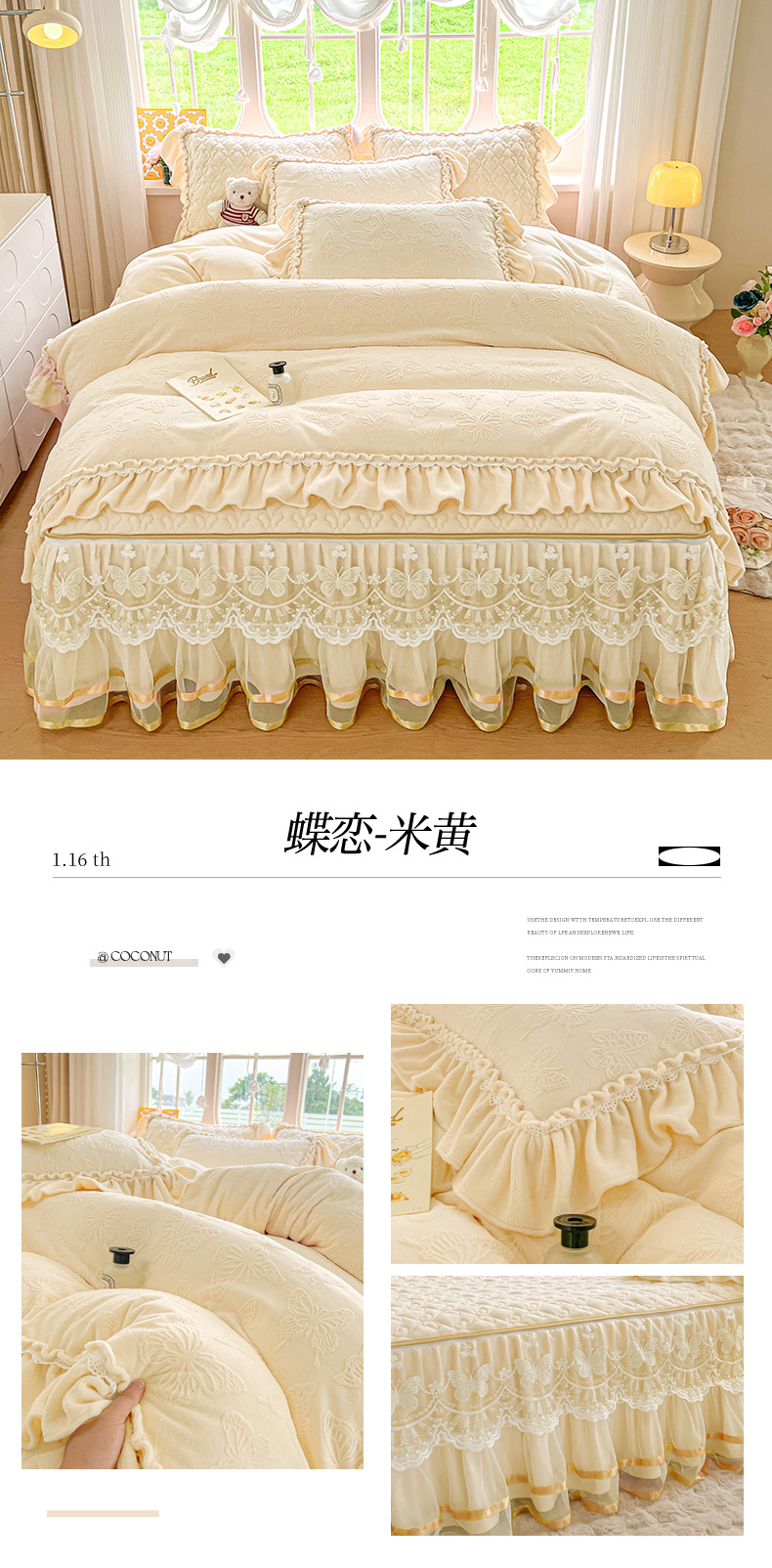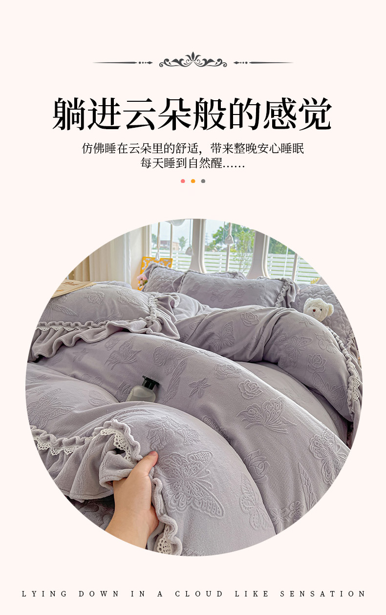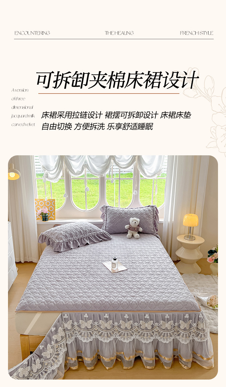 当前位置: 91家纺网 > 商品网购 > 床品套件 > 四件套 > 其它四件套 > 罗艺轩 2025新款简约雕花牛奶绒可拆卸床裙四件套蝶恋(已申专版,严格控价) 蝶恋-灰