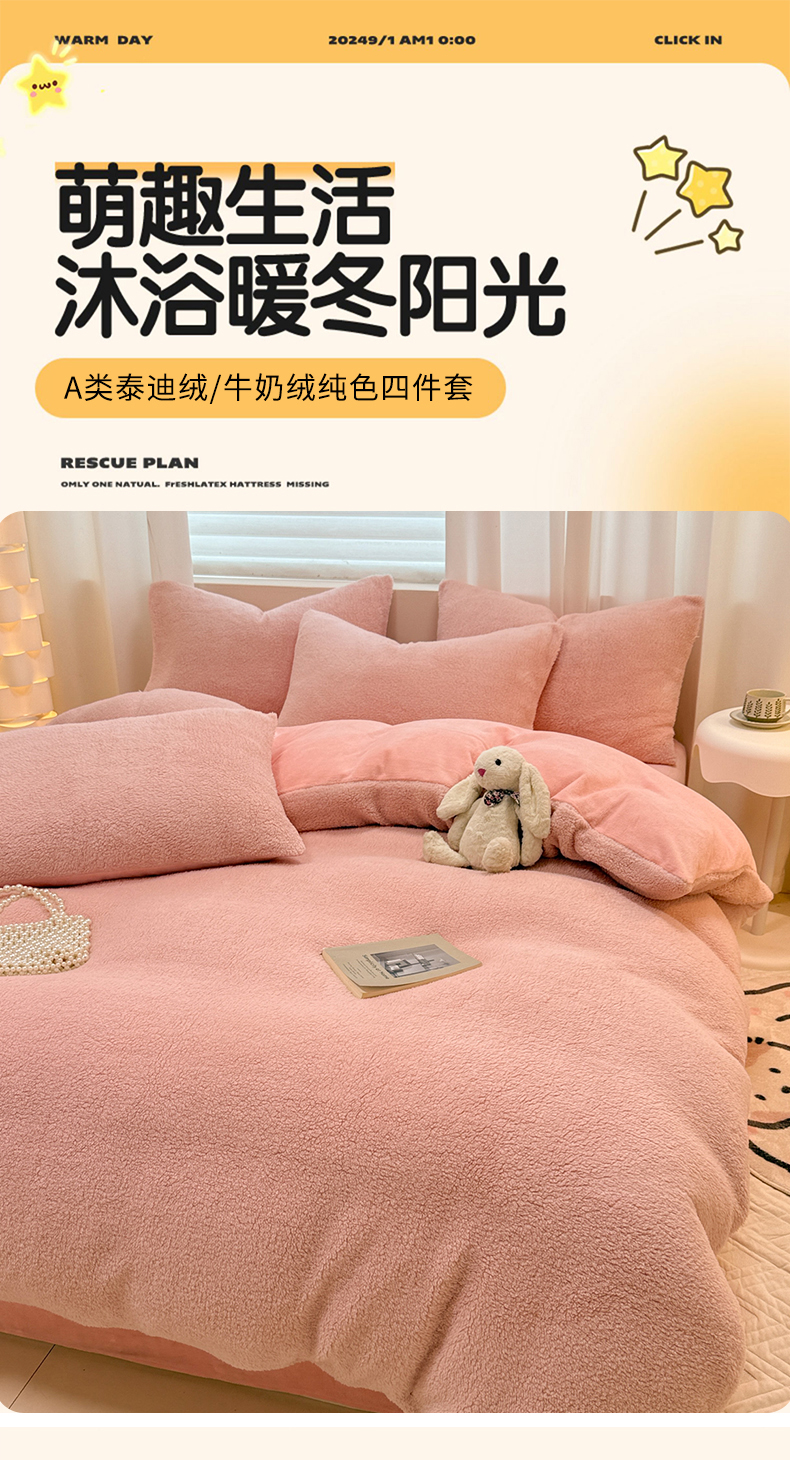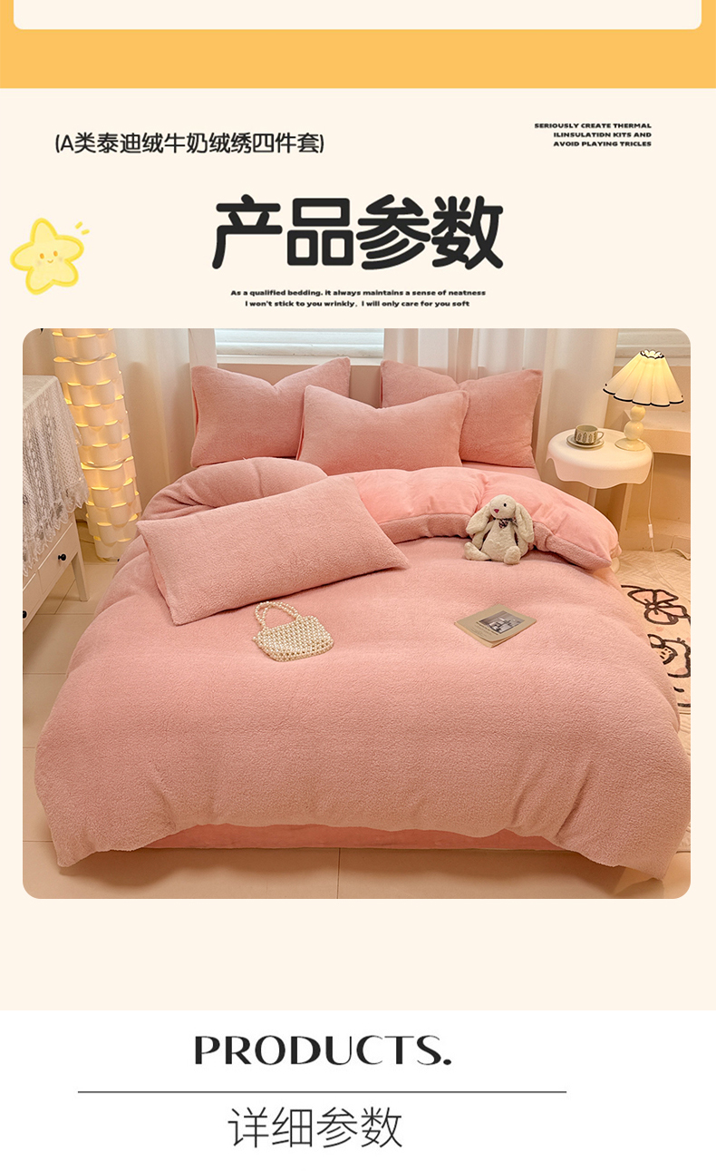当前位置: 91家纺网 > 商品网购 > 床品套件 > 四件套 > 牛奶绒四件套 > 眠博士 2025新款A类泰迪绒牛奶绒纯色四件套 泰迪绒-安妮粉