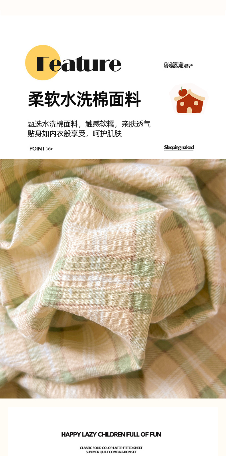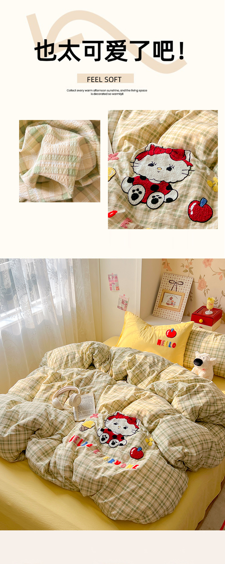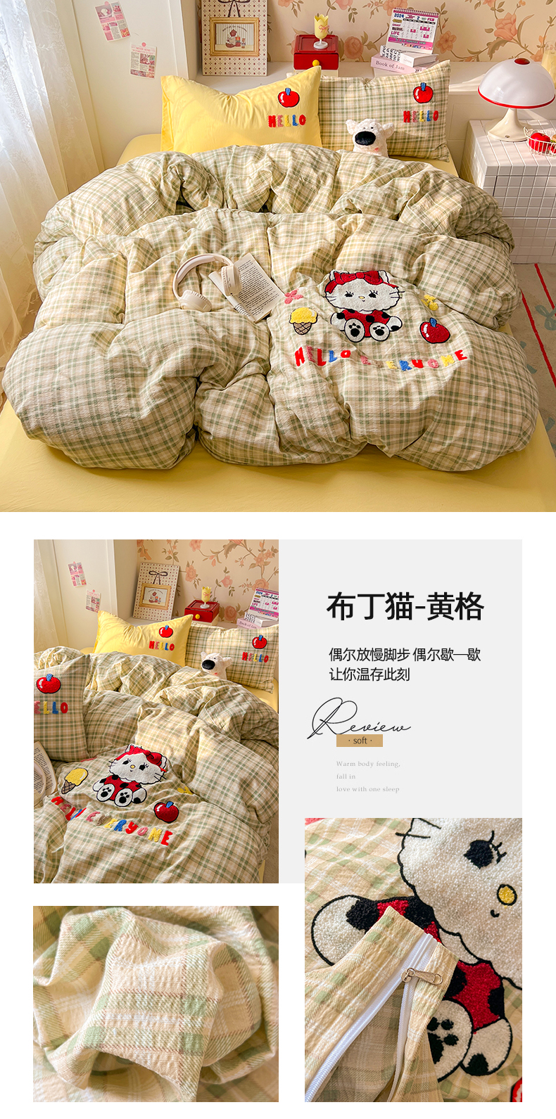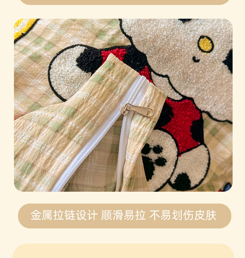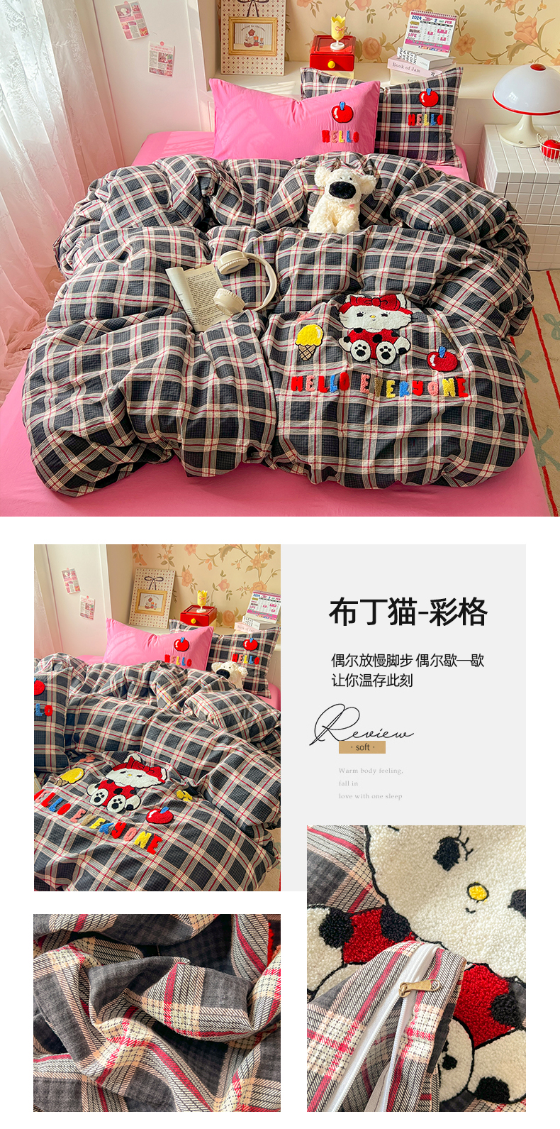(总)凯洛奇 2025新款复古风格子皱皱纱水洗棉毛巾绣四件套,布丁猫-黄格,布丁猫-彩格,布丁猫-灰格,布丁猫-绿格,布丁猫-红格