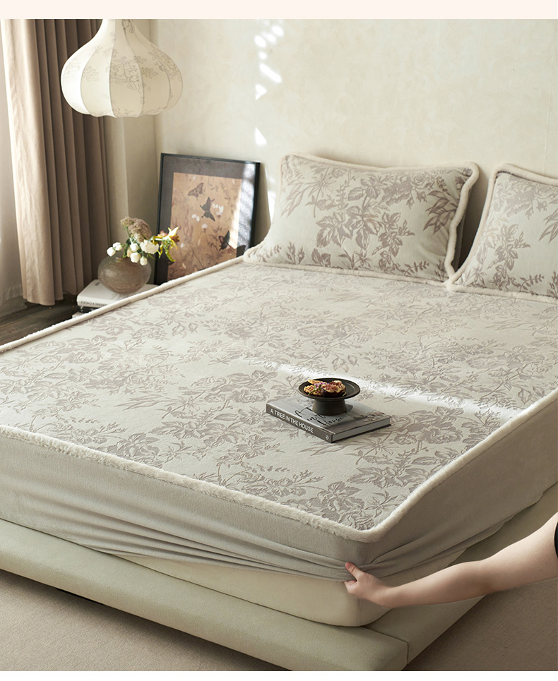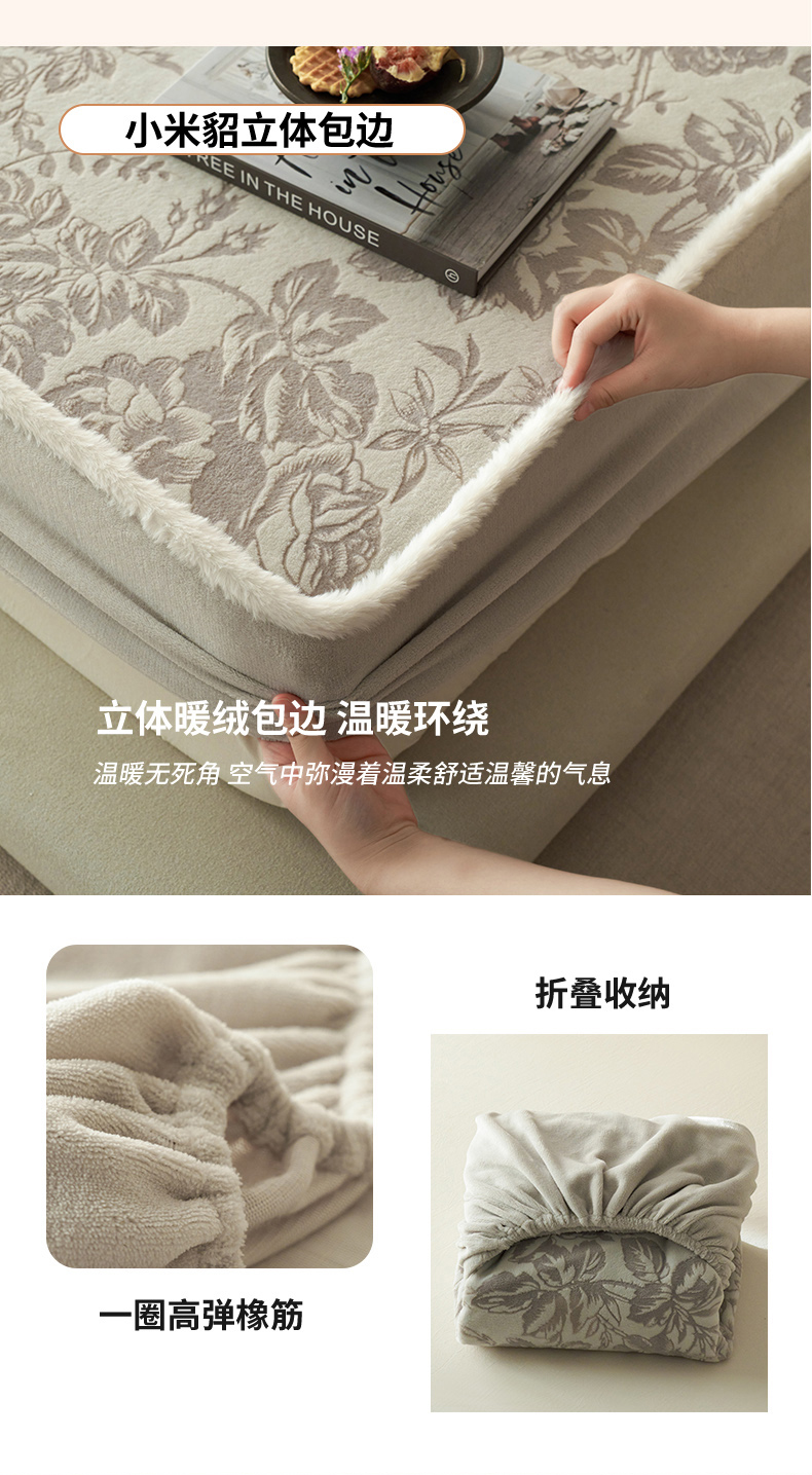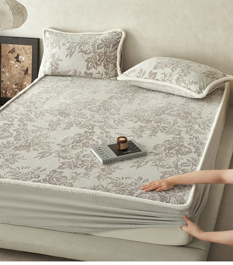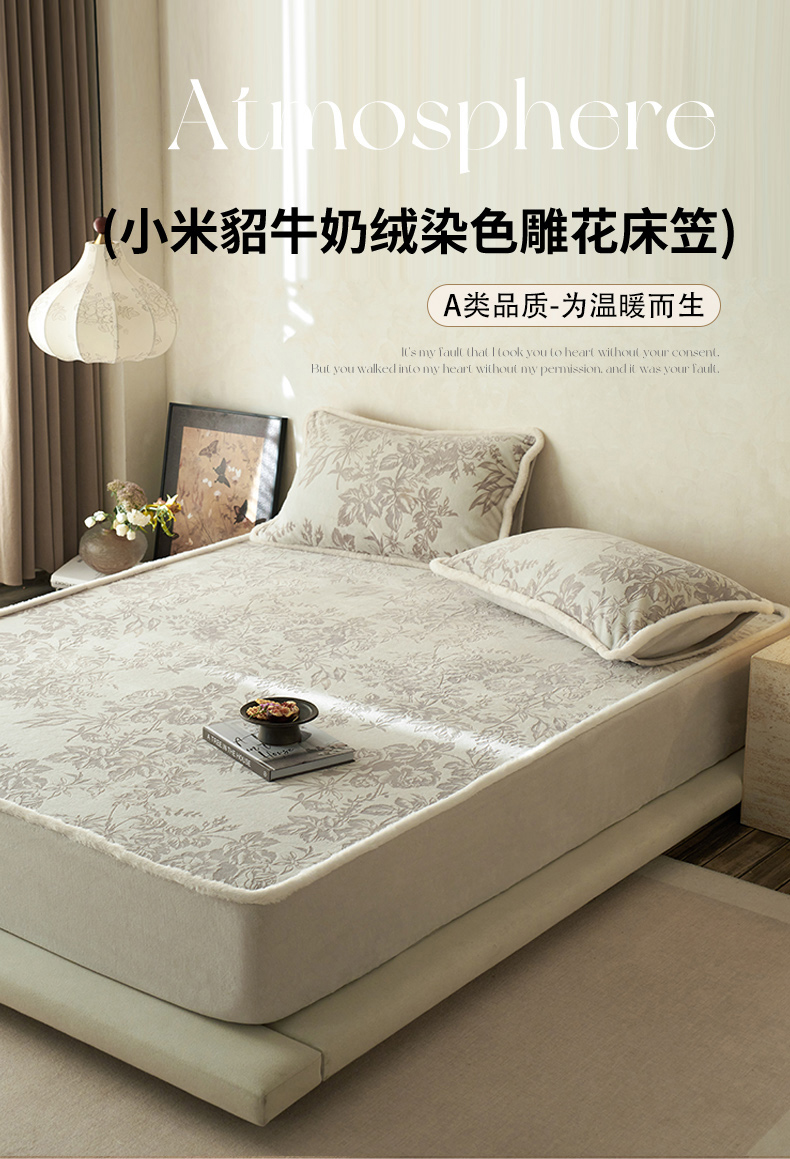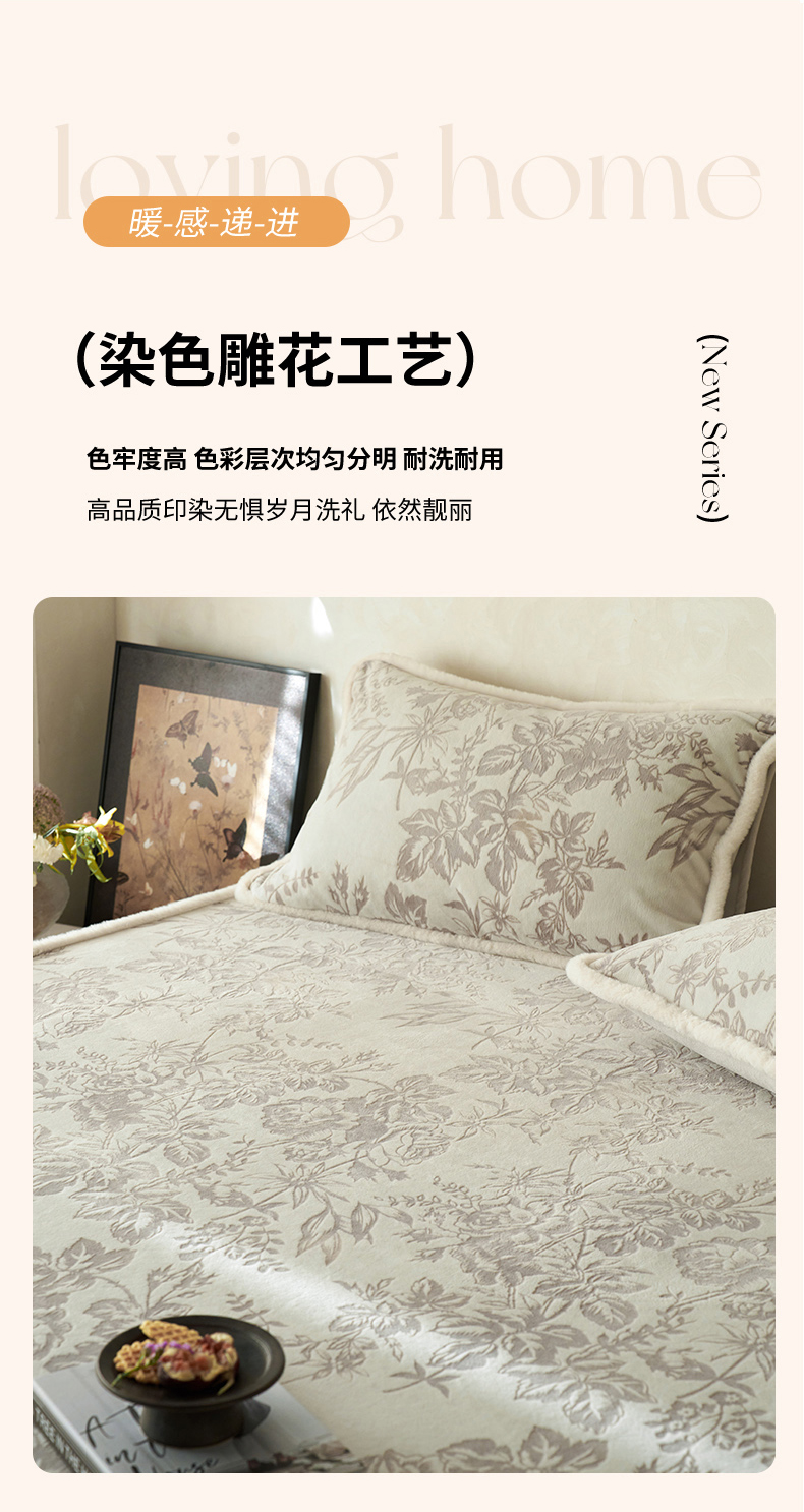 商品名称:宜代光年 2025新款A类小米貂复古牛奶绒染色雕花单床笠 静若繁花-灰