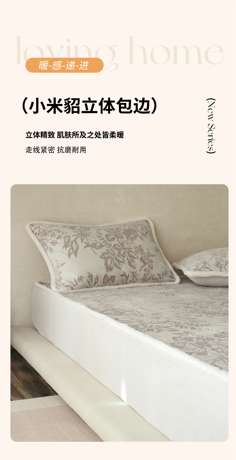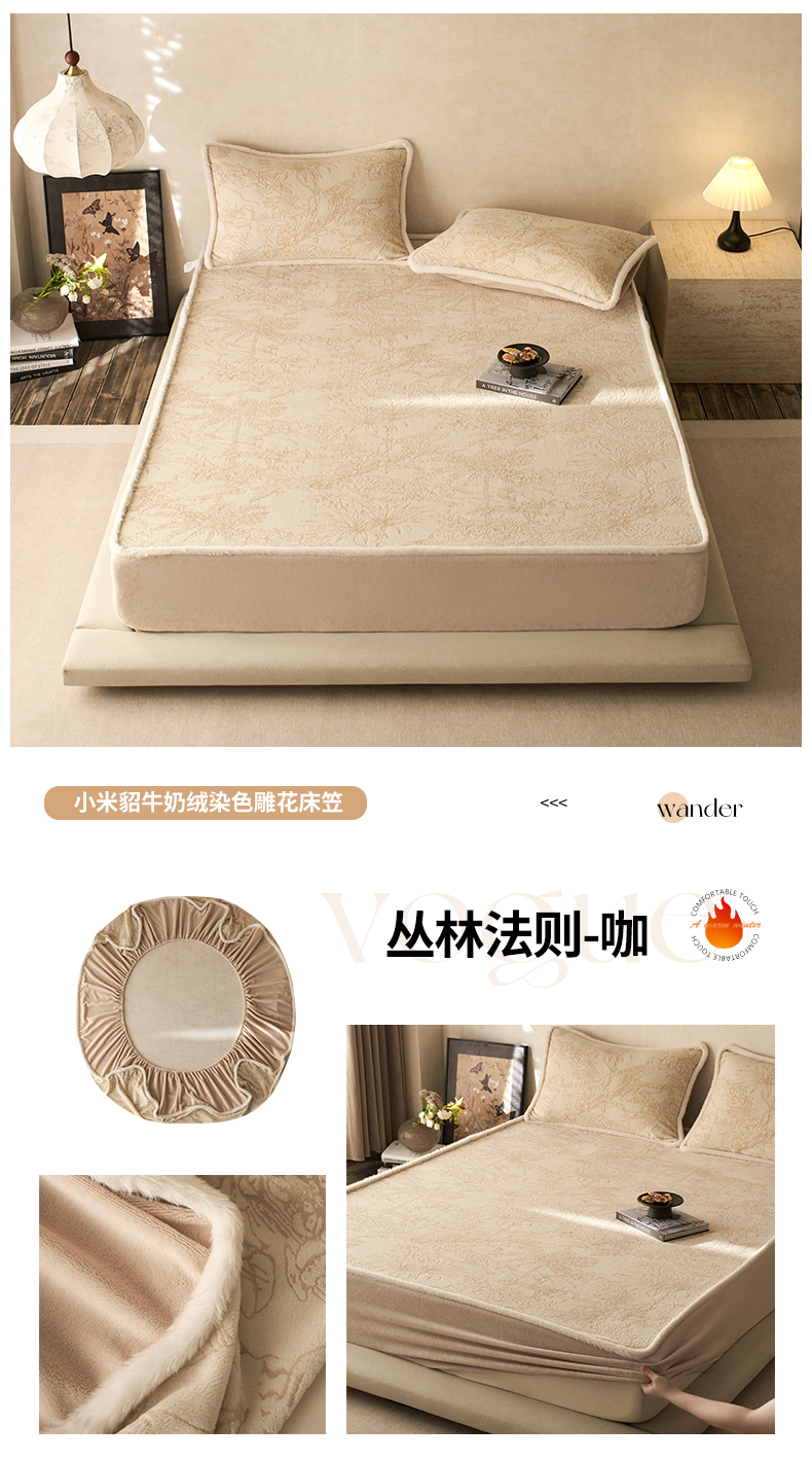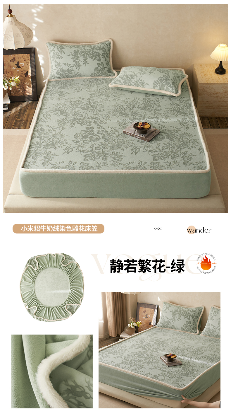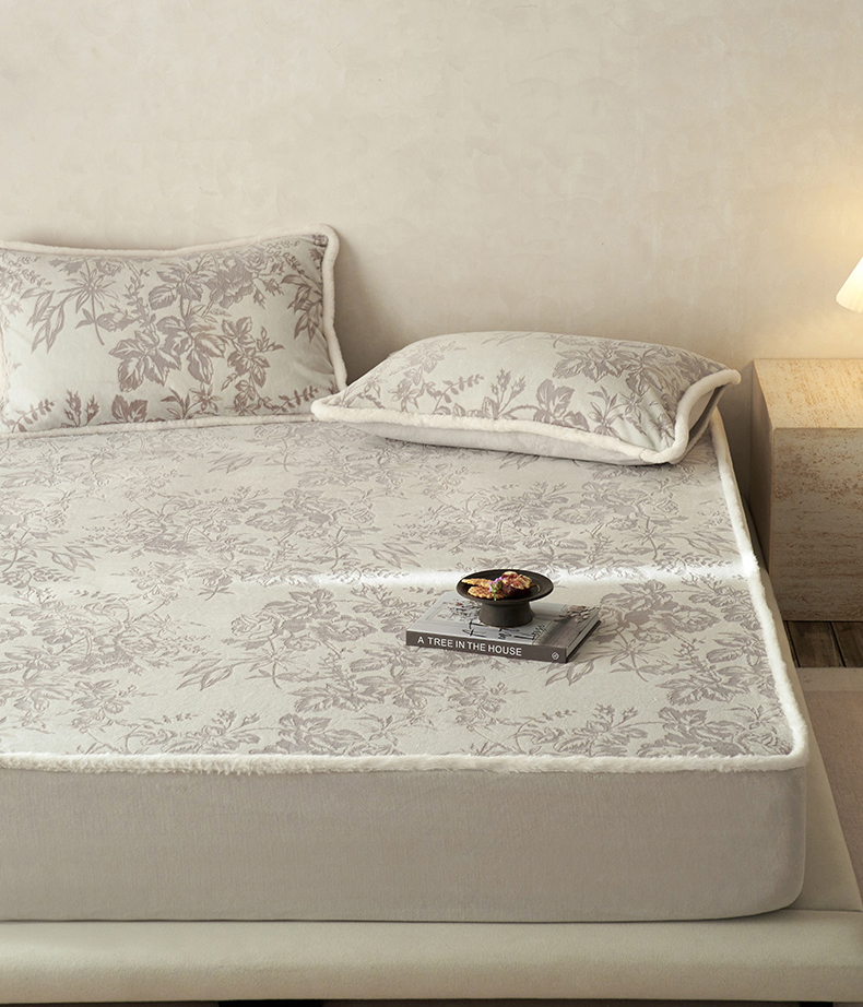 商品名称:宜代光年 2025新款A类小米貂复古牛奶绒染色雕花单床笠 静若繁花-灰