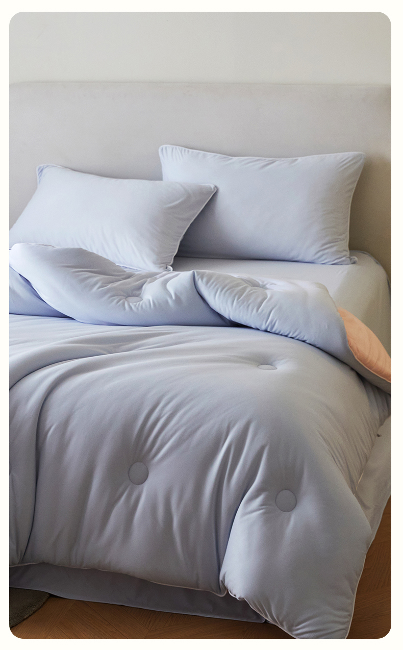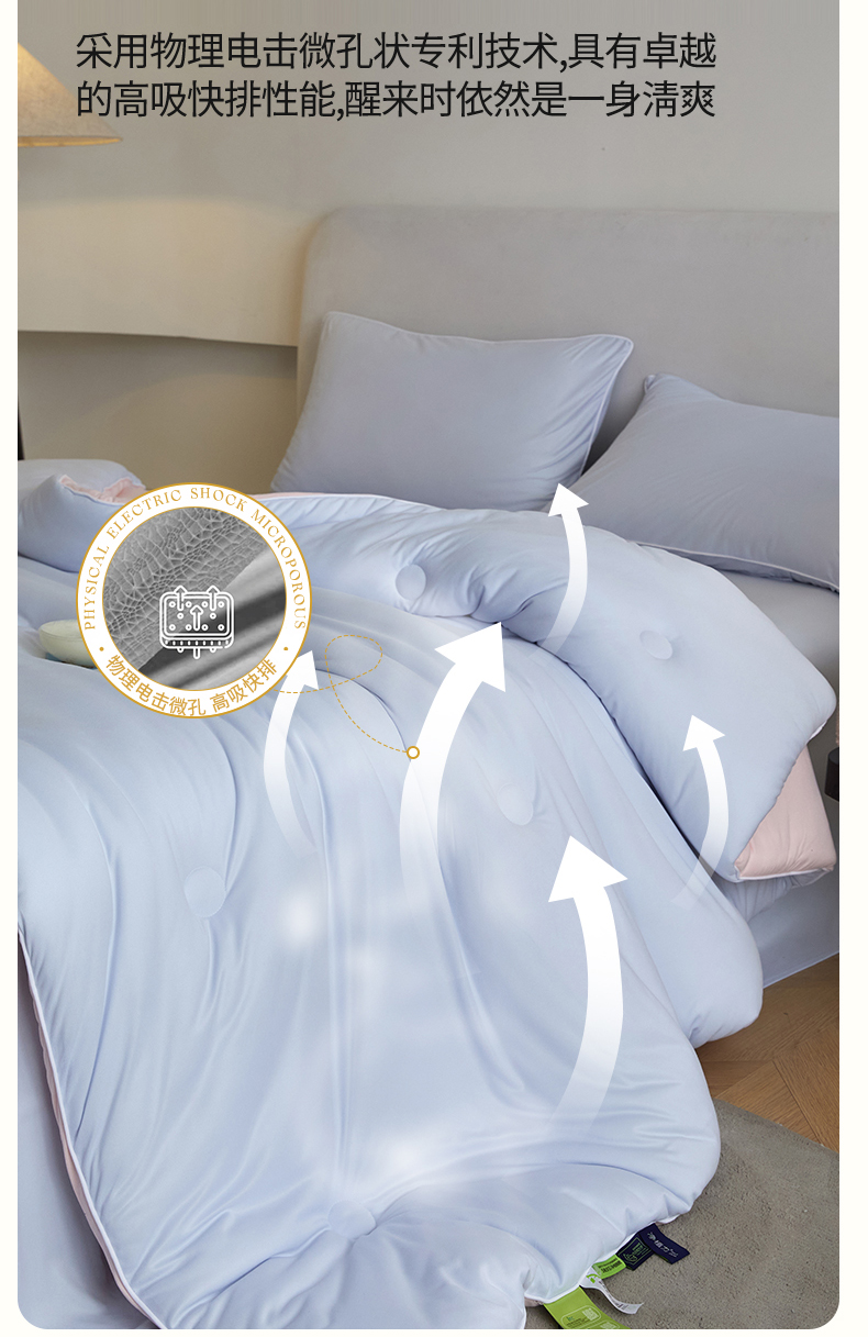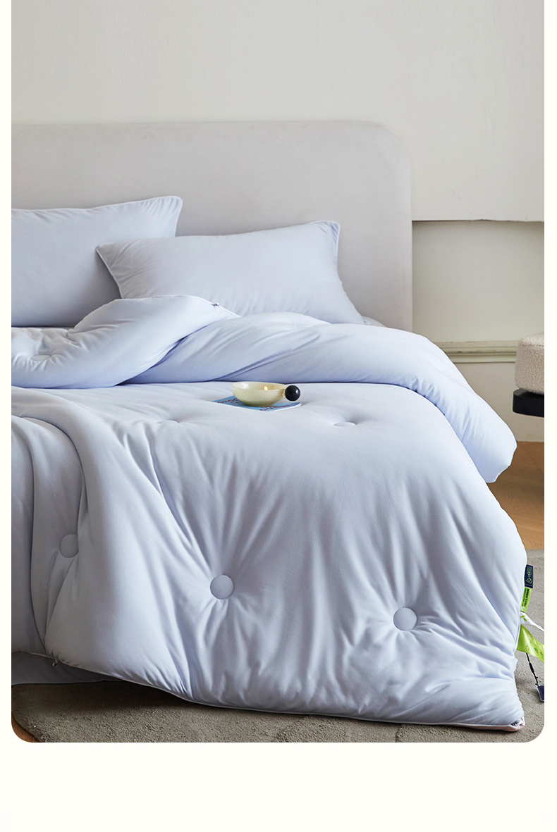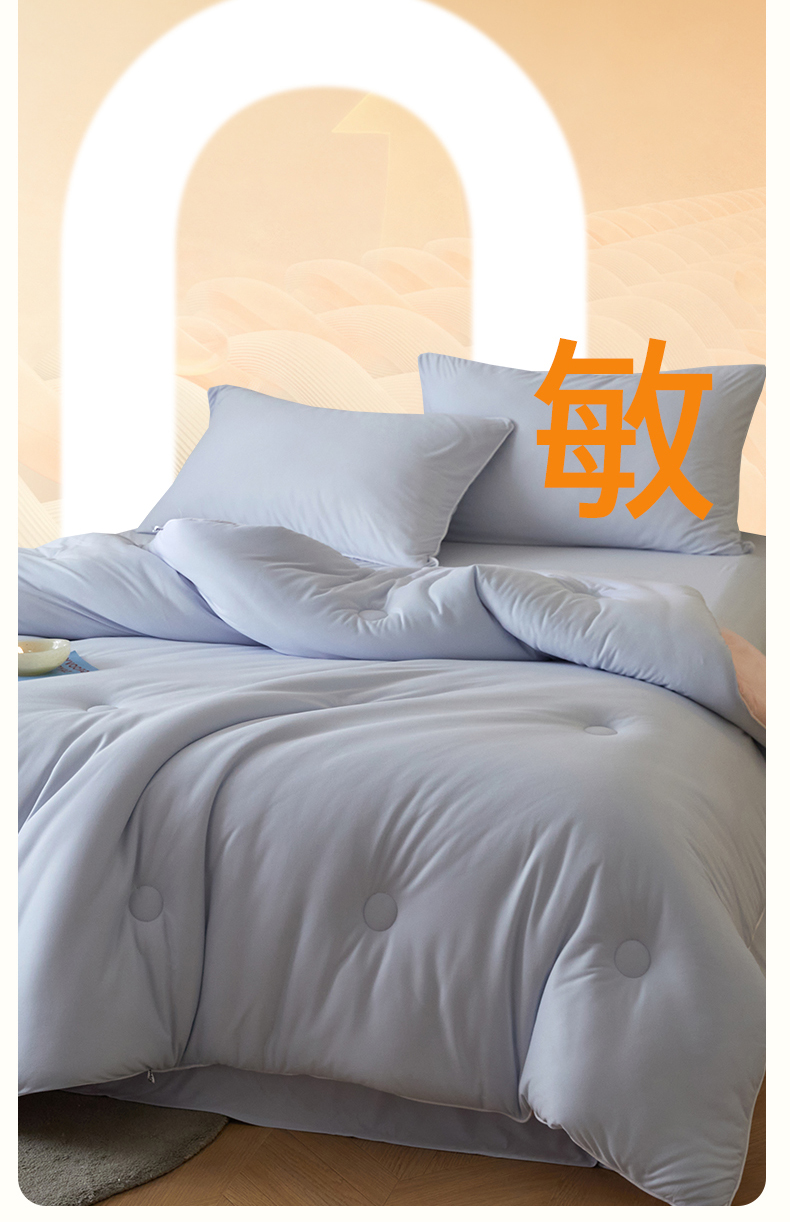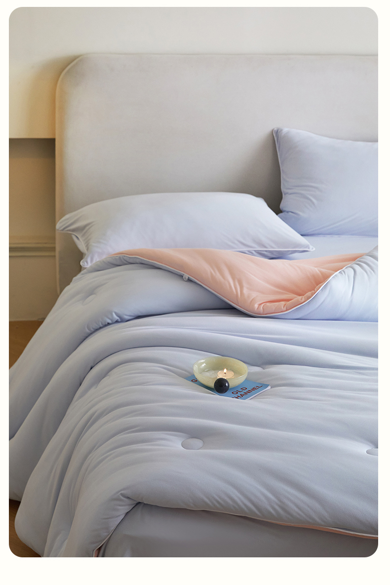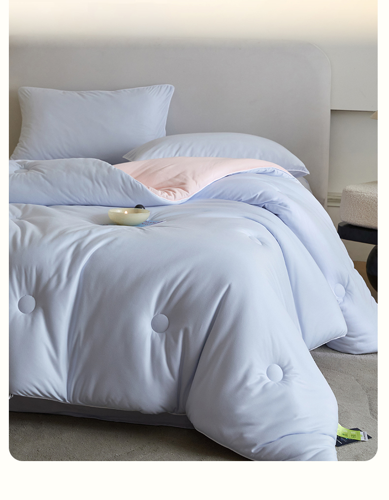 • 91家纺网 家纺一手货源 找家纺 头等舱 2025新款针织A类软糯净植力抗菌防螨防霉低致敏双拼秋冬被(空镜图) 典雅蓝+粉玉