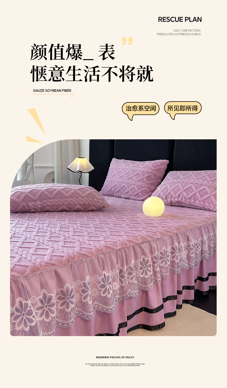 • 91家纺网 家纺一手货源 找家纺 (总)米瑞娜  2025新款塔芙绒雕花蕾丝床裙跨境外贸,白色,宝蓝,果绿,灰色,卡其,蓝灰,玫红,浅紫