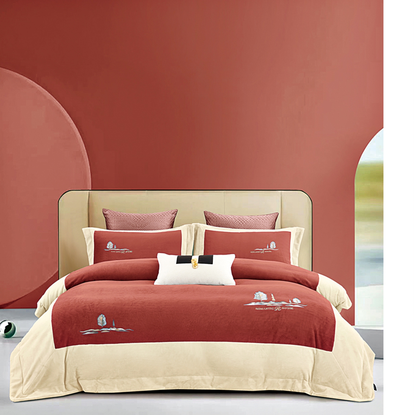 商品名称:芯丝路枕业 2025新款爱丁堡蚕丝绒四件套 爱丁堡-焦糖红