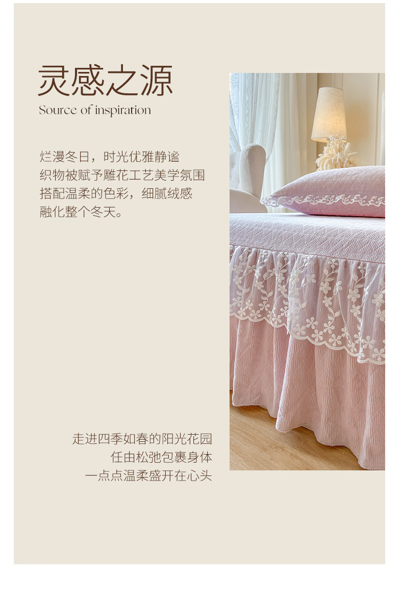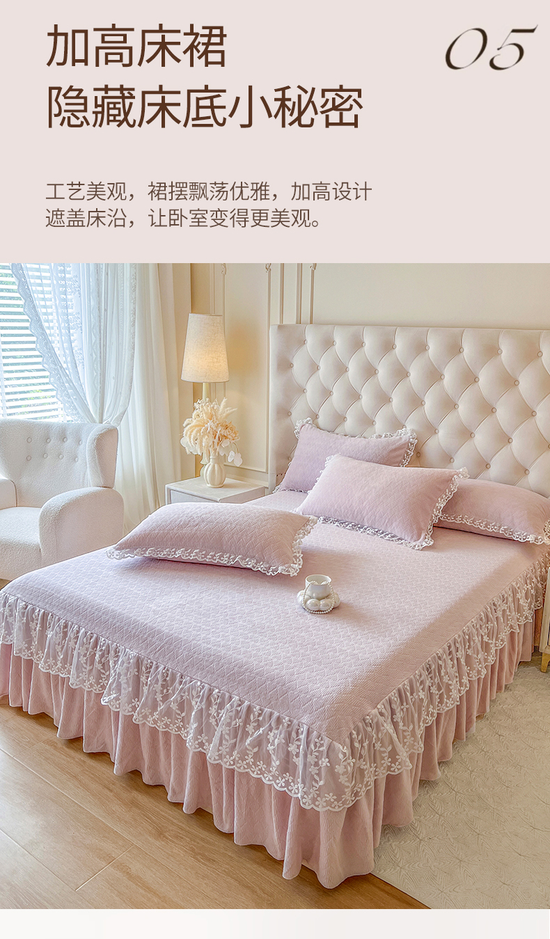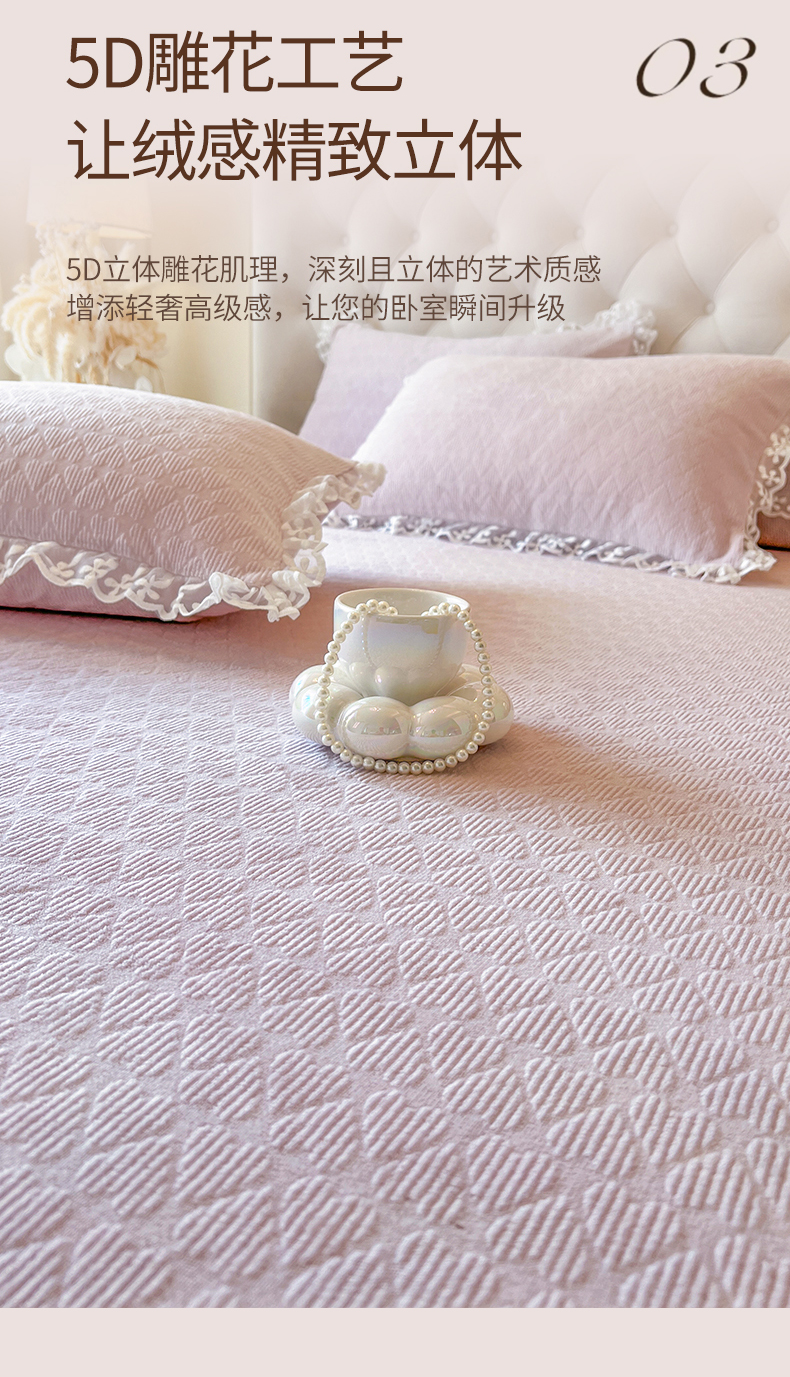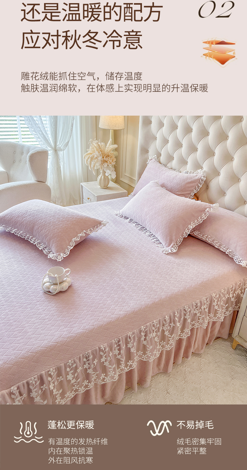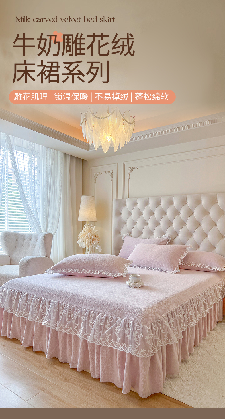• 91家纺网 家纺一手货源 找家纺 网红馆(ck家纺) 2025新款雕花牛奶绒床裙系列单床裙-蜜语甜心 蜜语甜心-浅紫