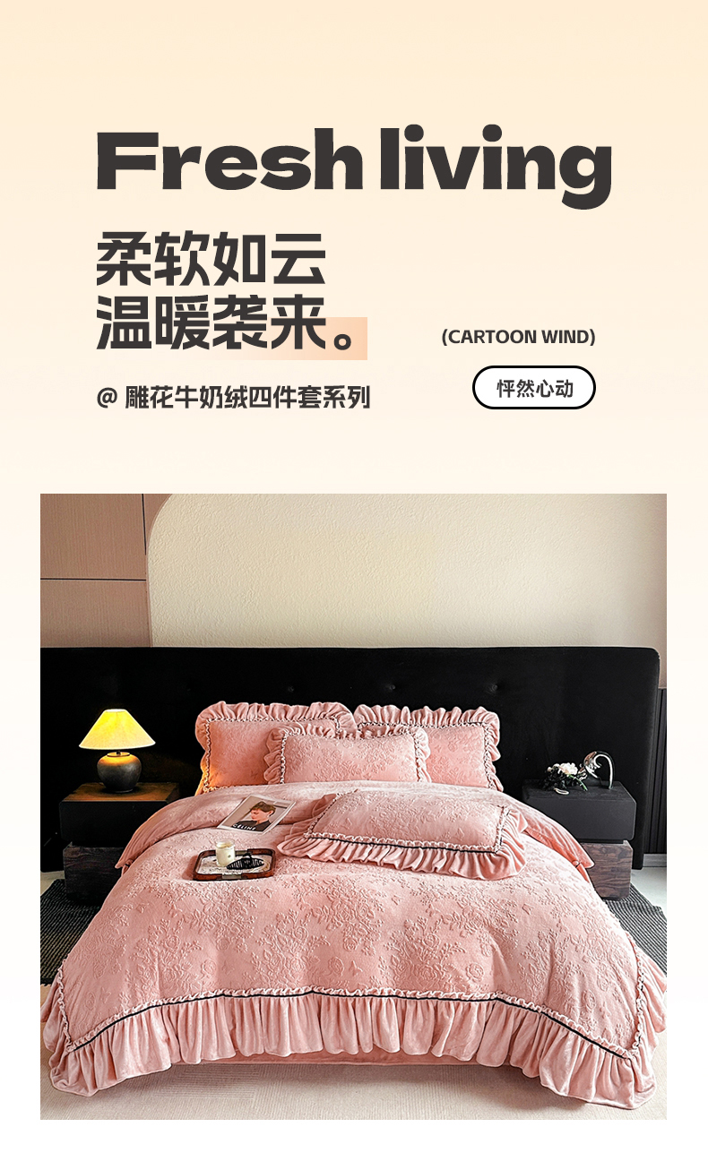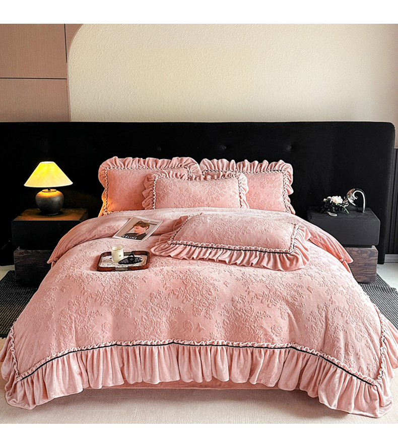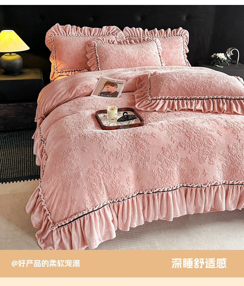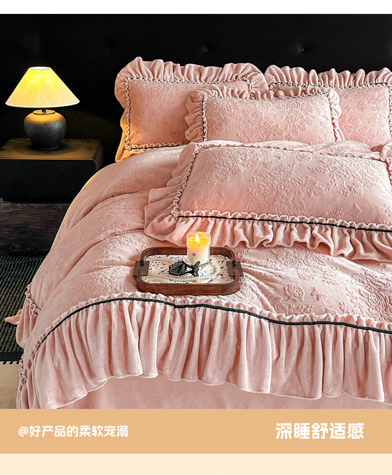 诺梵家纺 2025新款花边款雕花牛奶绒四件套 芊黛-粉