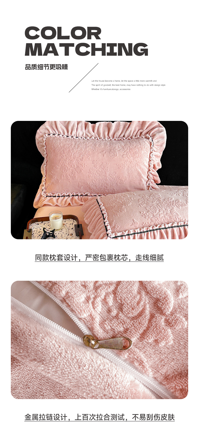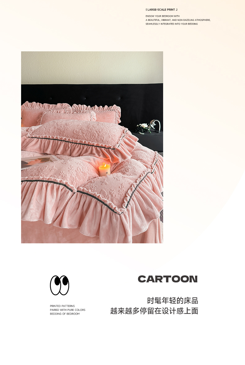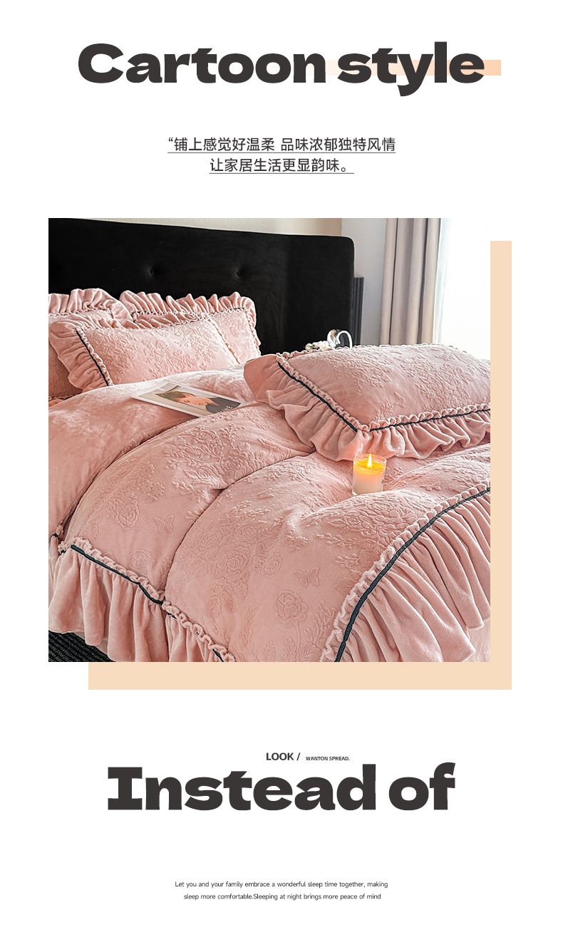 诺梵家纺 2025新款花边款雕花牛奶绒四件套 芊黛-粉