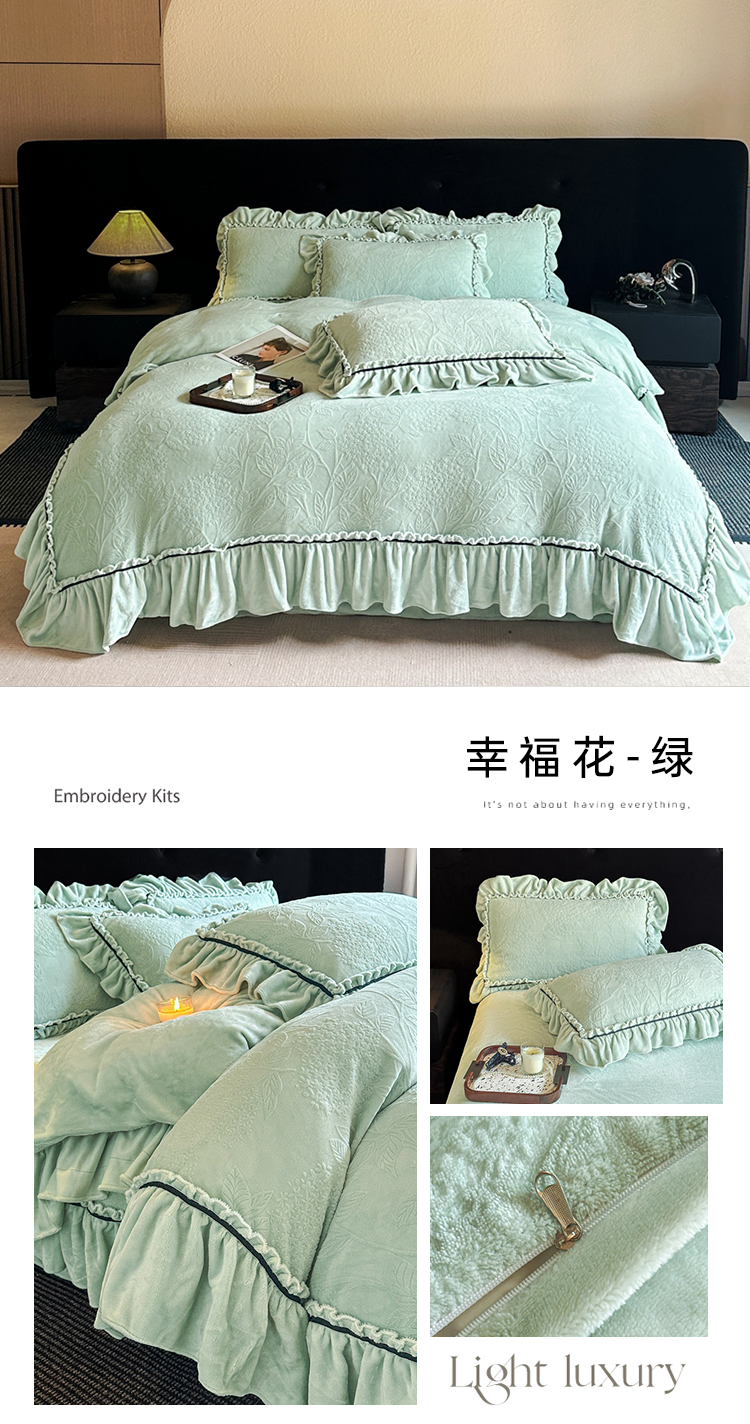 (总)诺梵家纺 2025新款花边款雕花牛奶绒四件套,芊黛-粉,芊黛-紫,芊黛-黄,幸福花-绿,芊黛-绿,幸福花-黄,芊黛-米白,幸福花-米白,幸福花-紫
