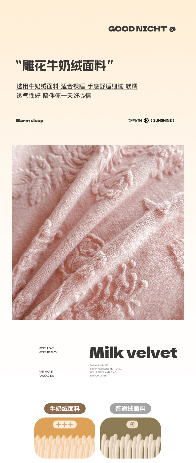 商品名称:诺梵家纺 2025新款花边款雕花牛奶绒四件套 芊黛-粉