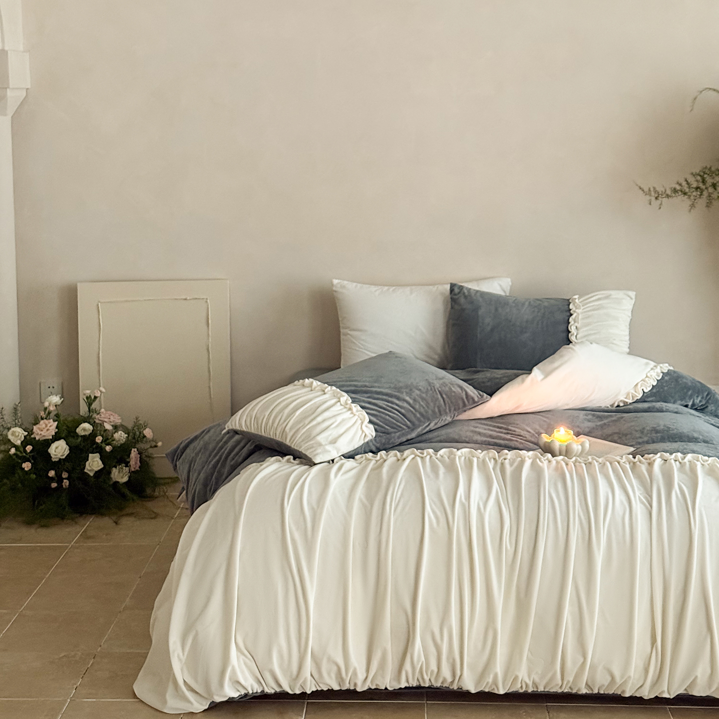 (总)ONE TWO ONE 121 2025秋冬新款纯色双拼兔毛绒牛奶绒床上用品被套床单枕套四件套被子床垫褥子被芯毛毯 (会员:-10元),晚意方糖