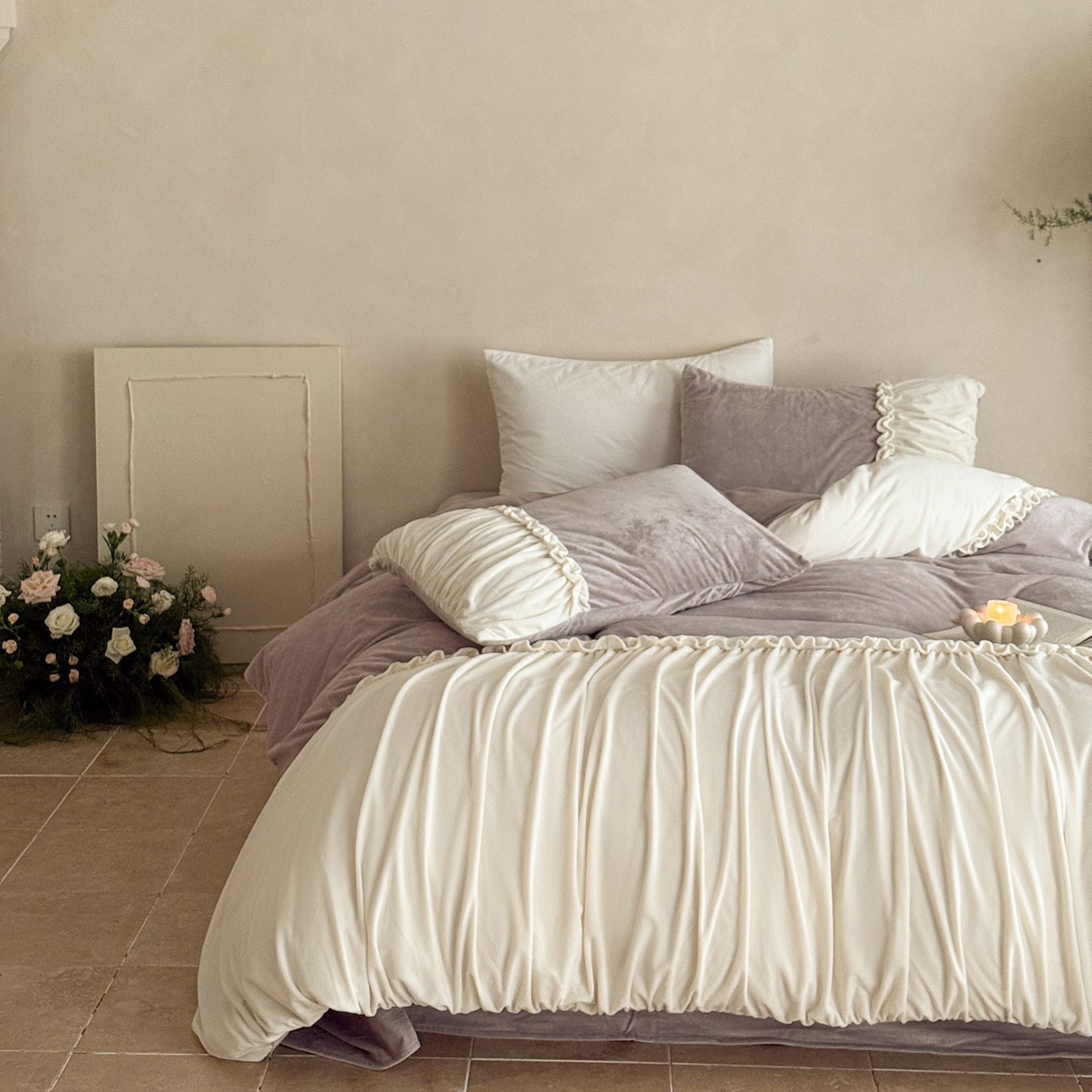(总)ONE TWO ONE 121 2025秋冬新款纯色双拼兔毛绒牛奶绒床上用品被套床单枕套四件套被子床垫褥子被芯毛毯 (会员:-10元),安娜-粉昔,安娜-灰咖,安娜-雪白,安娜-云紫