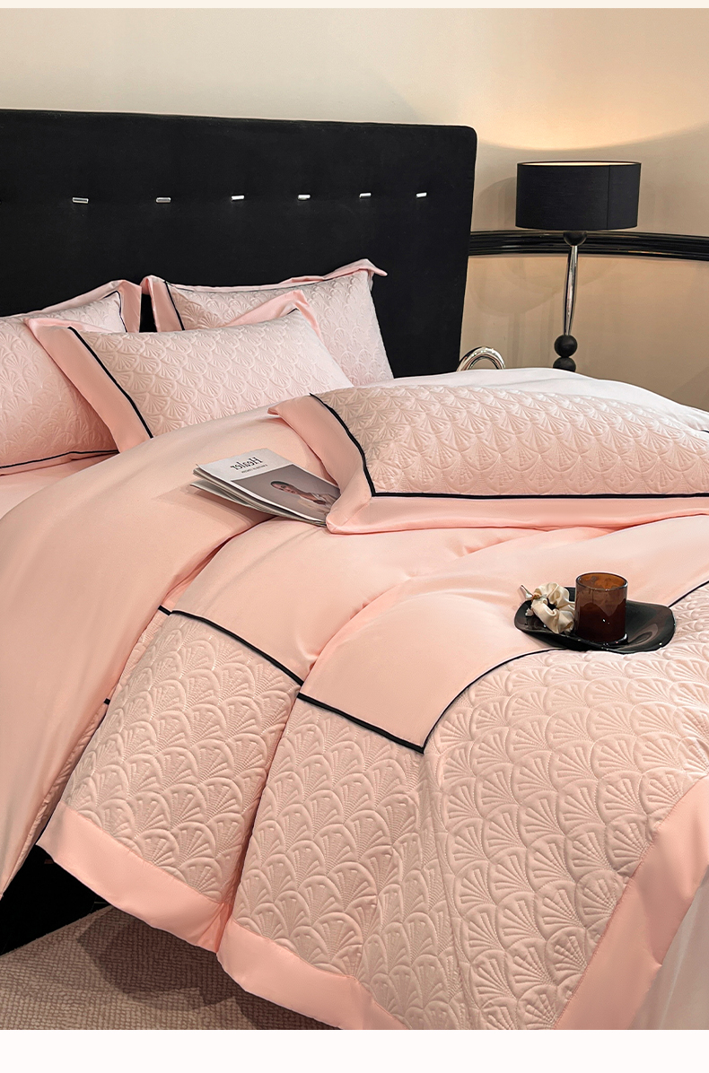 (总)博纳家纺 2026新款高端色织提花拼角绣花宽边亲肤棉四件套海韵系列,海韵-粉玉,海韵-绅士灰,海韵-香槟