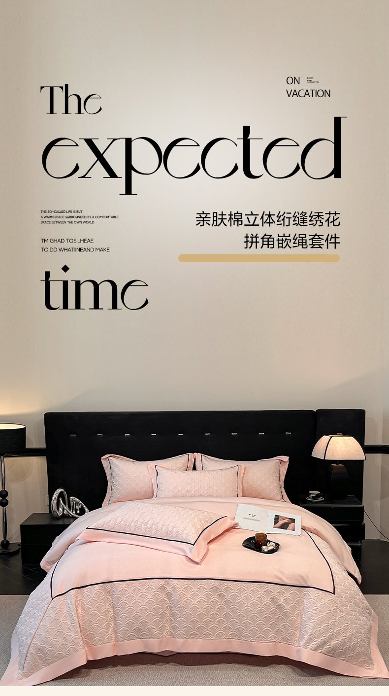 (总)博纳家纺 2025新款镂空大宽边拼角高级简奢款亲肤棉四件套-山水提花,繁星蓝,粉玉,高级灰,香槟,象牙白