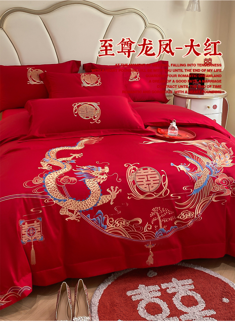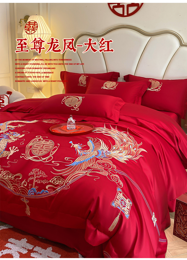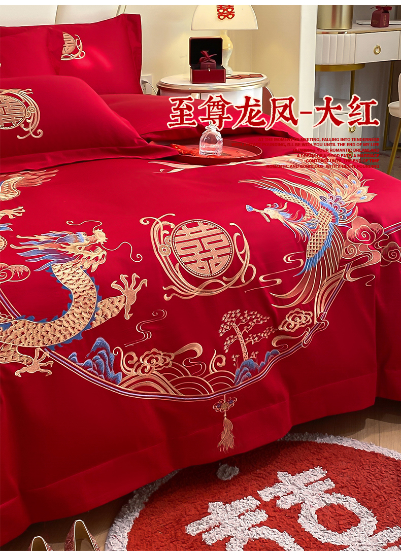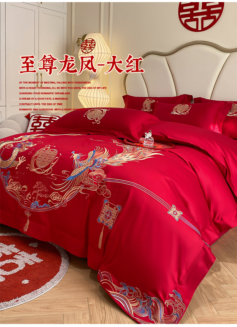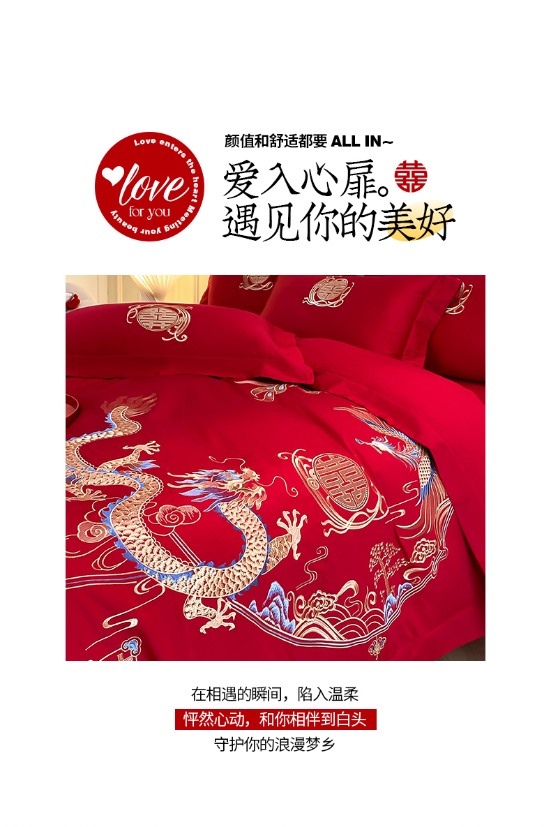 当前位置: 91家纺网 > 商品网购 > 床品套件 > 四件套 > 婚庆四件套 > 置顶家纺 2025新款亲肤磨毛刺绣婚庆四件套系列-棚拍 至尊龙凤-大红