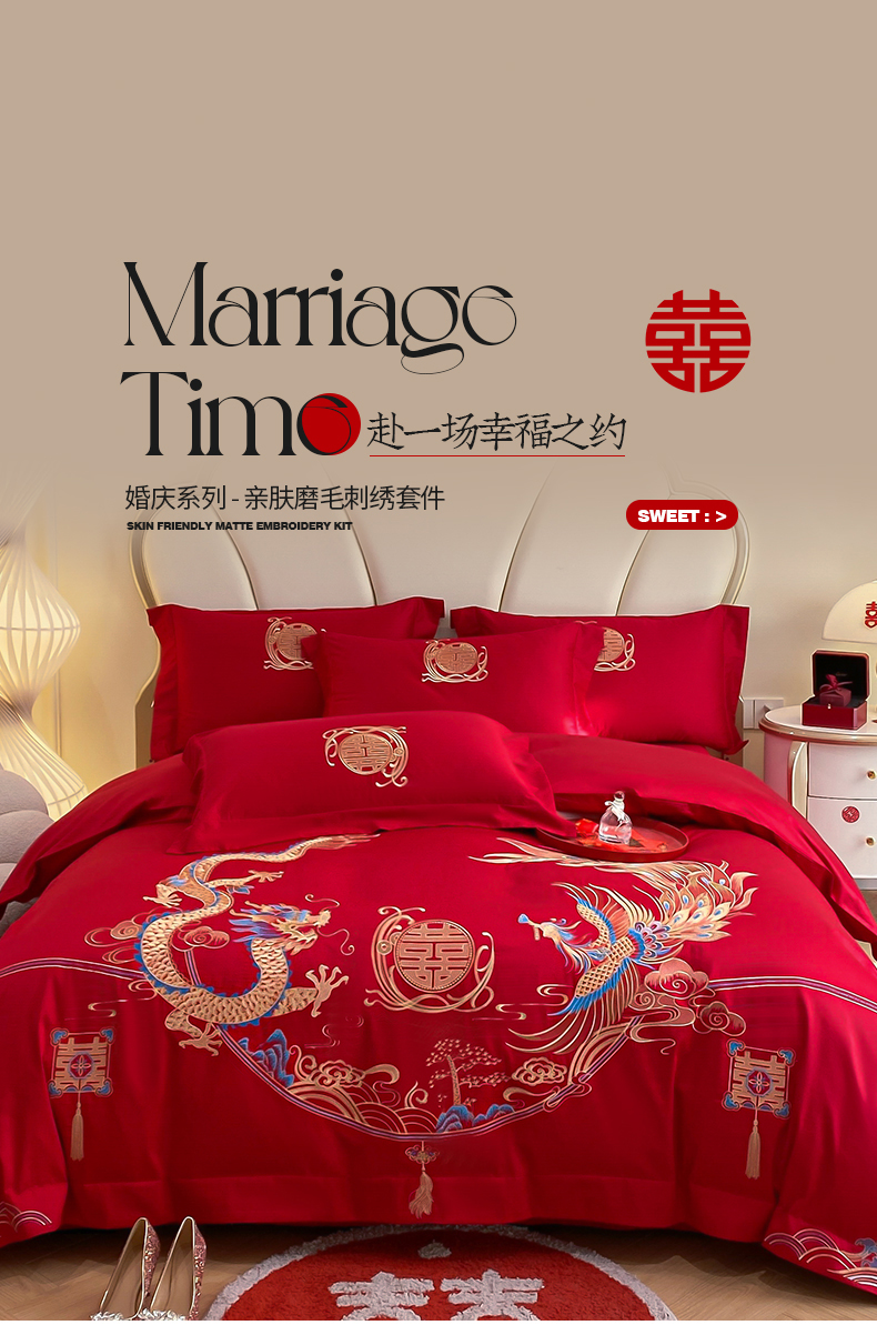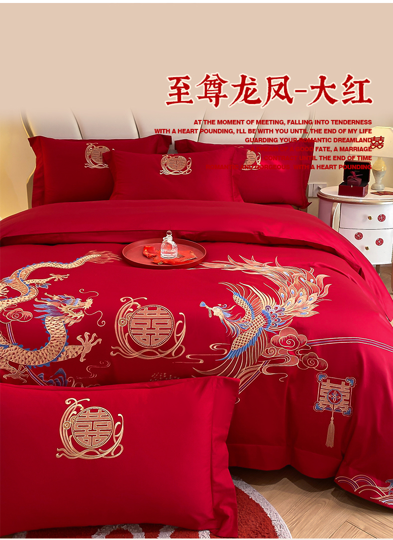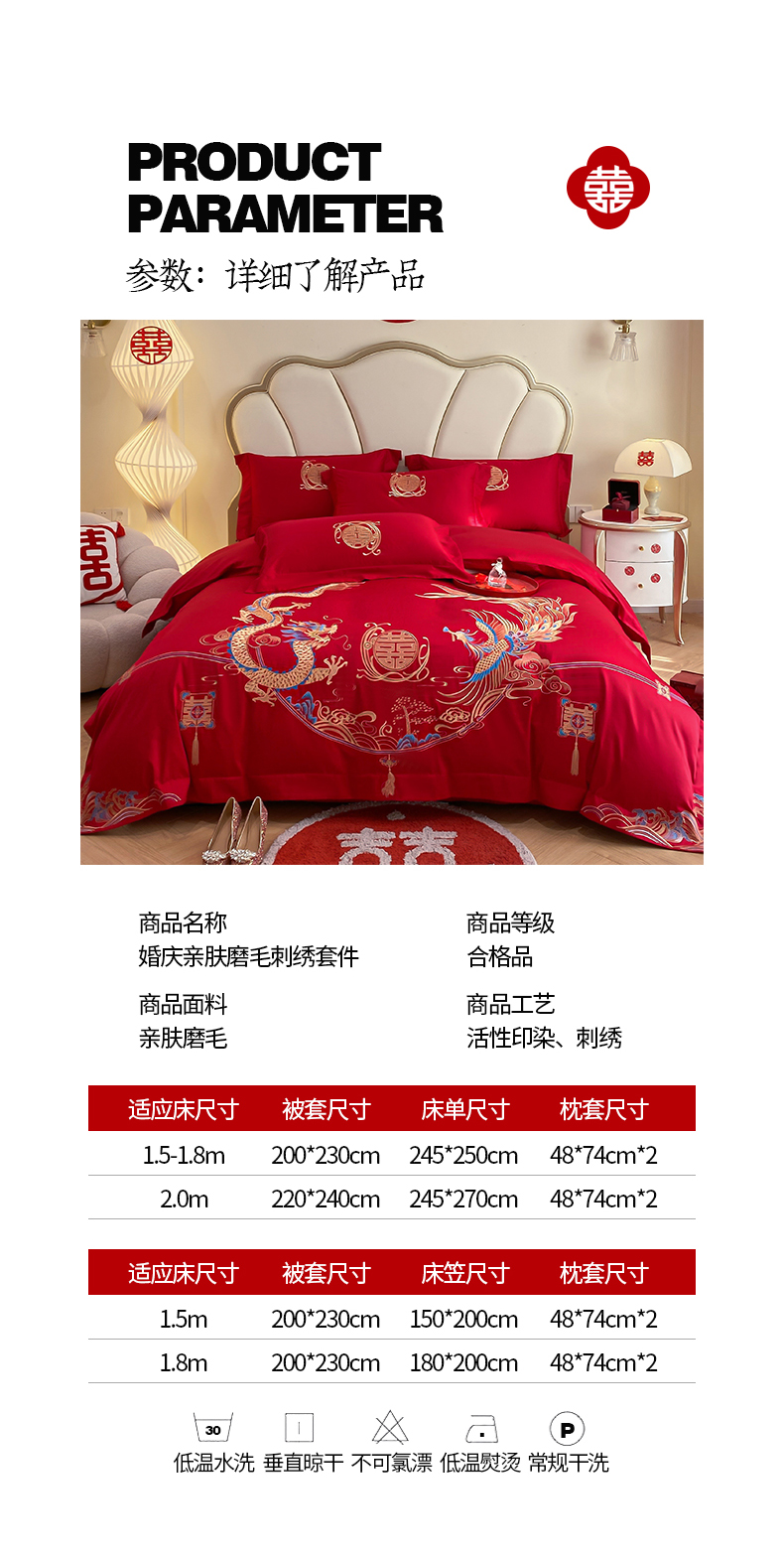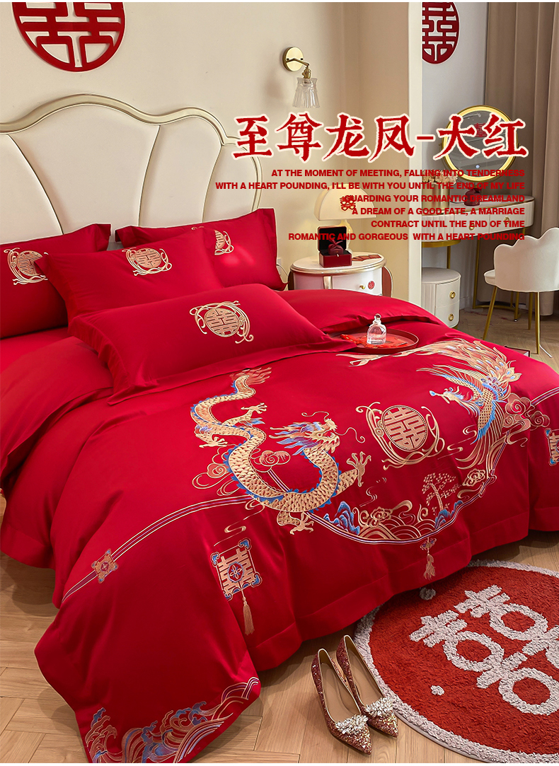 当前位置: 91家纺网 > 商品网购 > 床品套件 > 四件套 > 婚庆四件套 > 置顶家纺 2025新款亲肤磨毛刺绣婚庆四件套系列-棚拍 至尊龙凤-大红