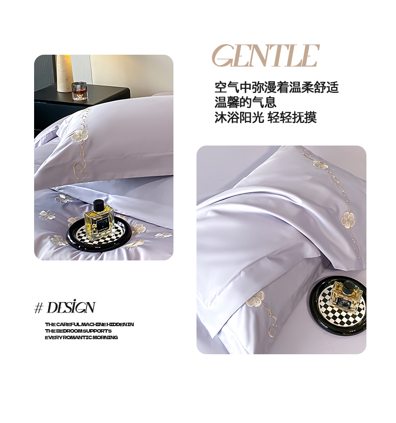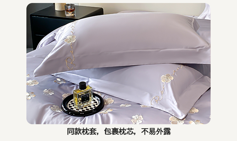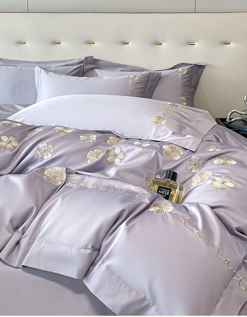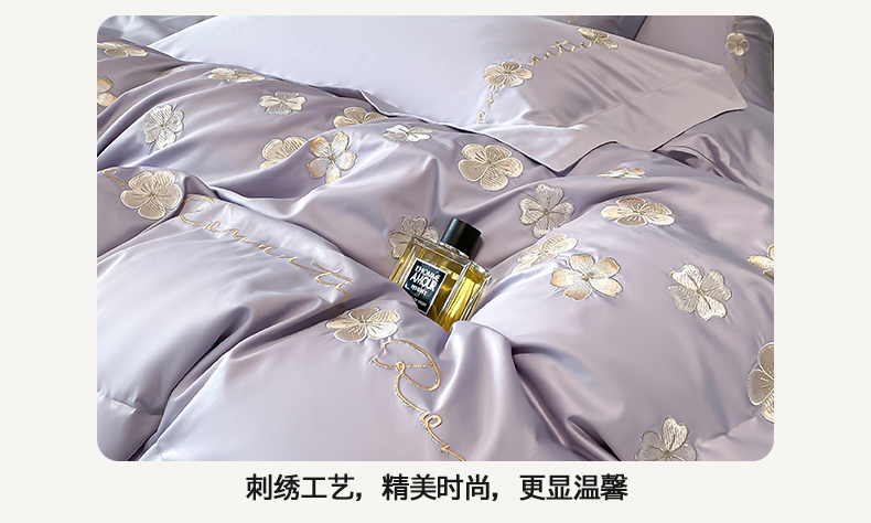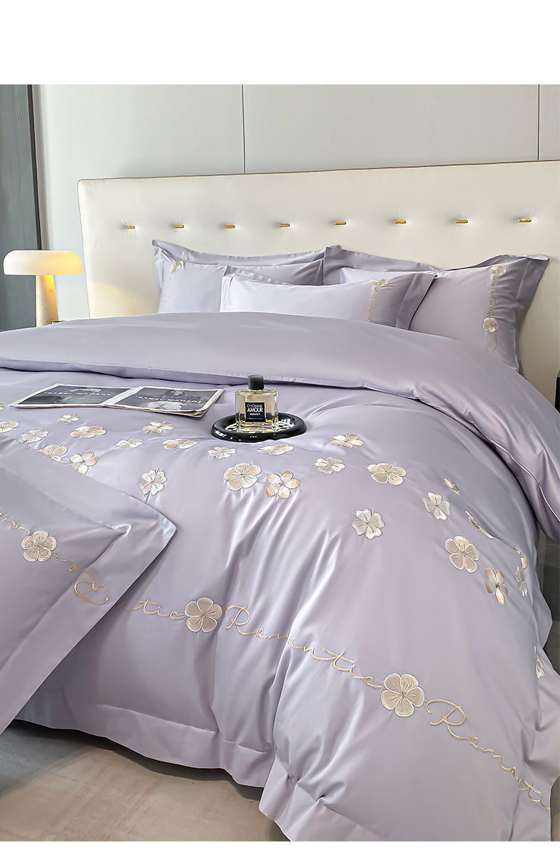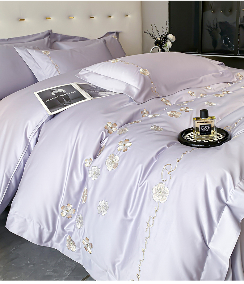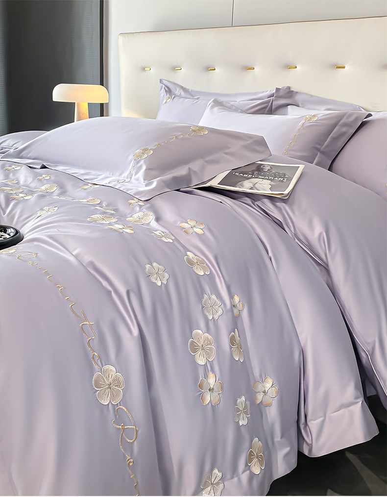 置顶家纺 2025新款13372全棉刺绣四件套-桃花朵朵开 桃花朵朵开-雅紫