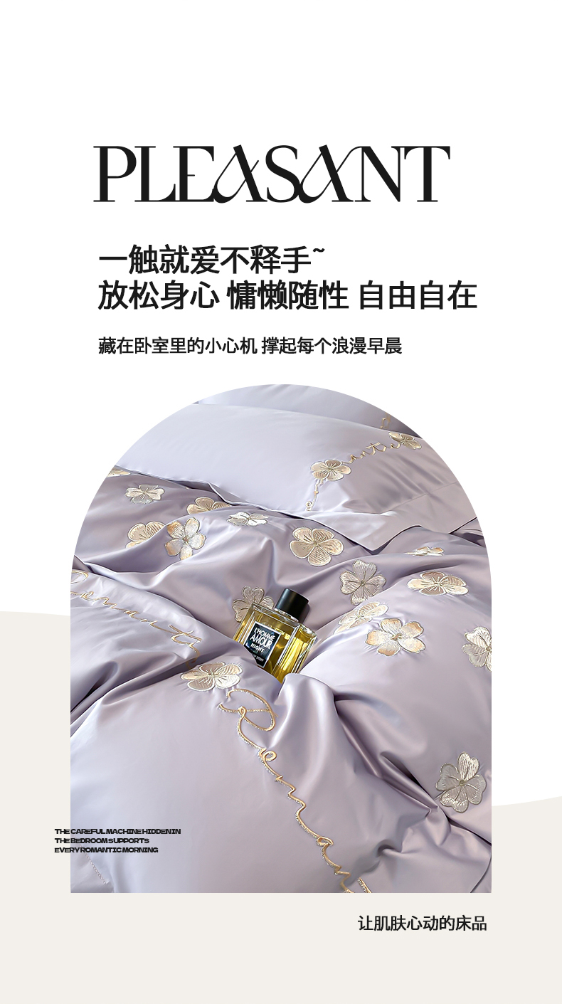 商品名称:置顶家纺 2025新款13372全棉刺绣四件套-桃花朵朵开 桃花朵朵开-雅紫