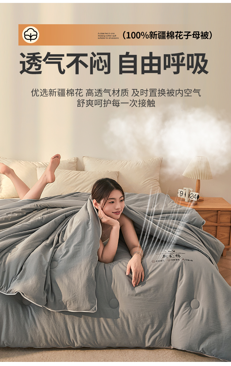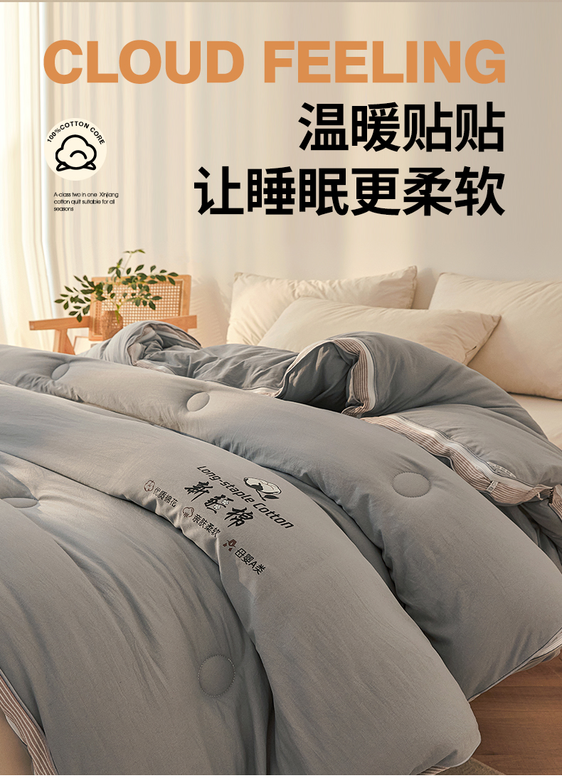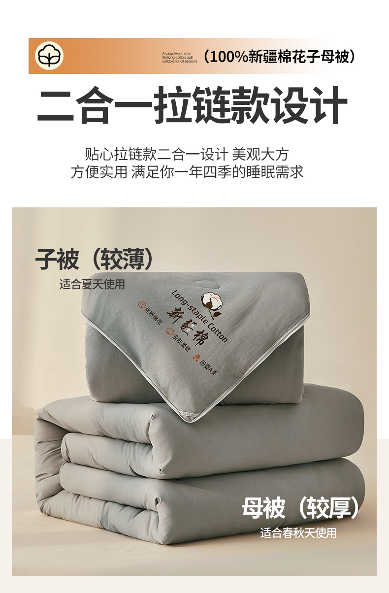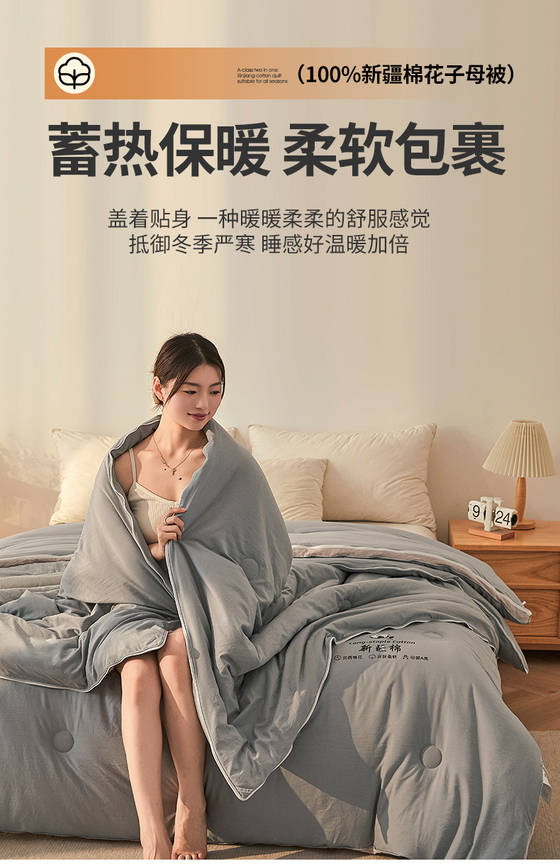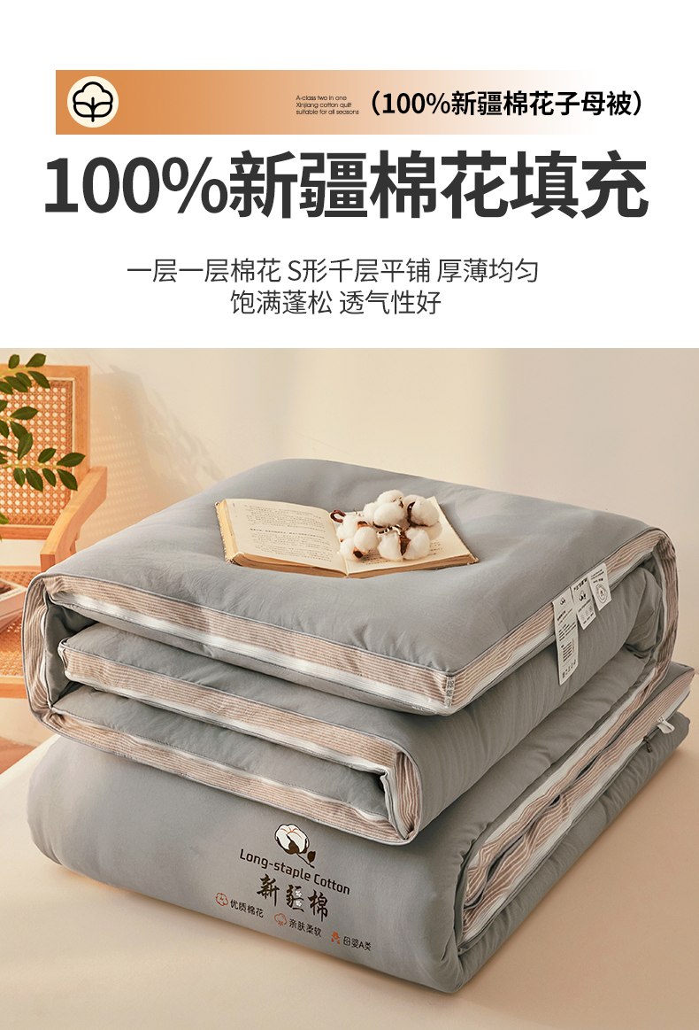 • 91家纺网 家纺一手货源 找家纺 棉森家纺 2025新款亲肤舒适中国梦立体新疆棉花子母被被子被芯 新疆棉 雅灰