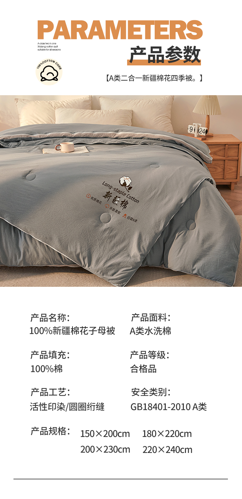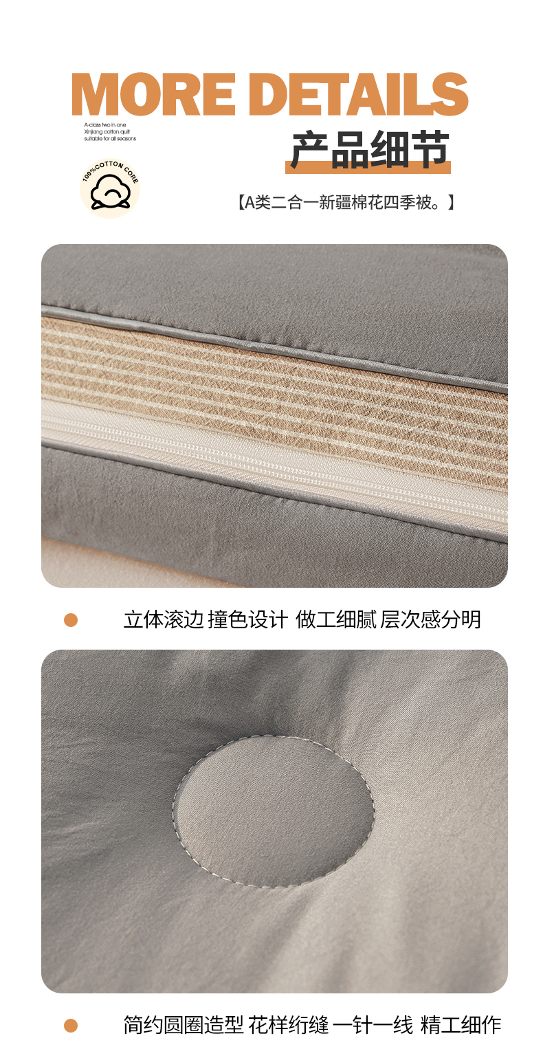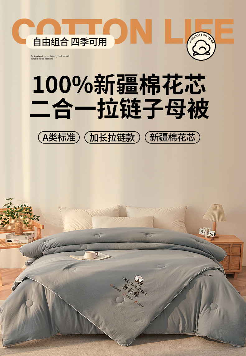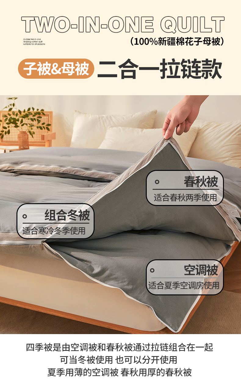 • 91家纺网 家纺一手货源 找家纺 棉森家纺 2025新款亲肤舒适中国梦立体新疆棉花子母被被子被芯 新疆棉 雅灰