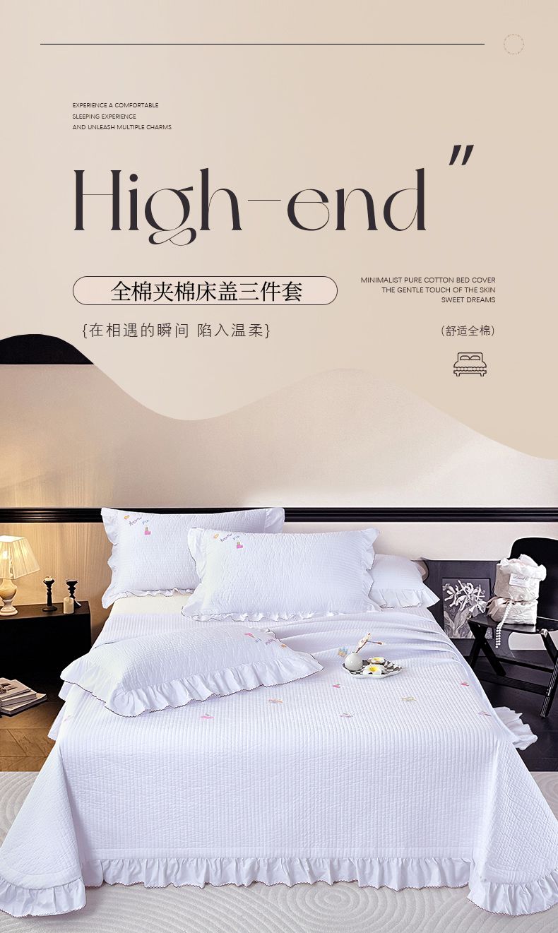 商品名称:OL家纺 2025新款全棉夹棉床盖三件套-芭比系列 桃夭粉
