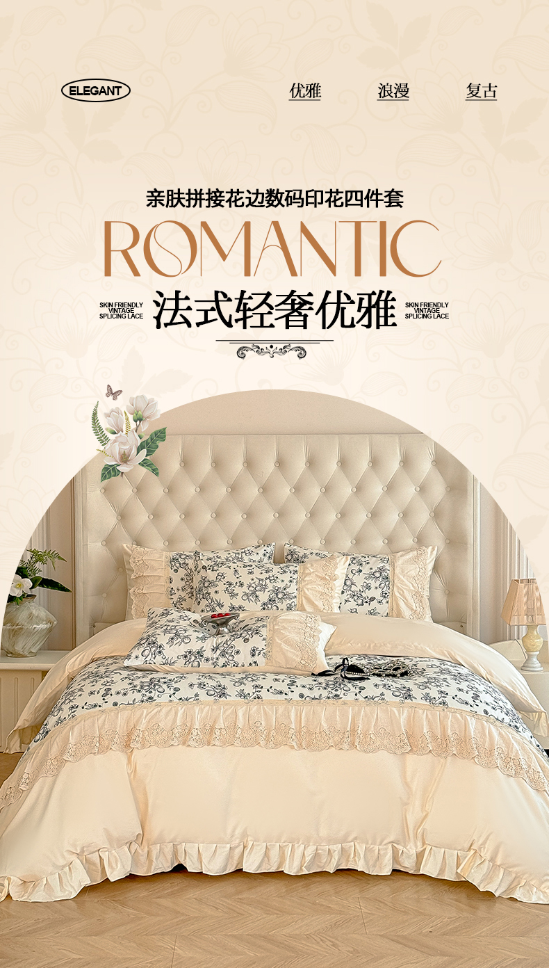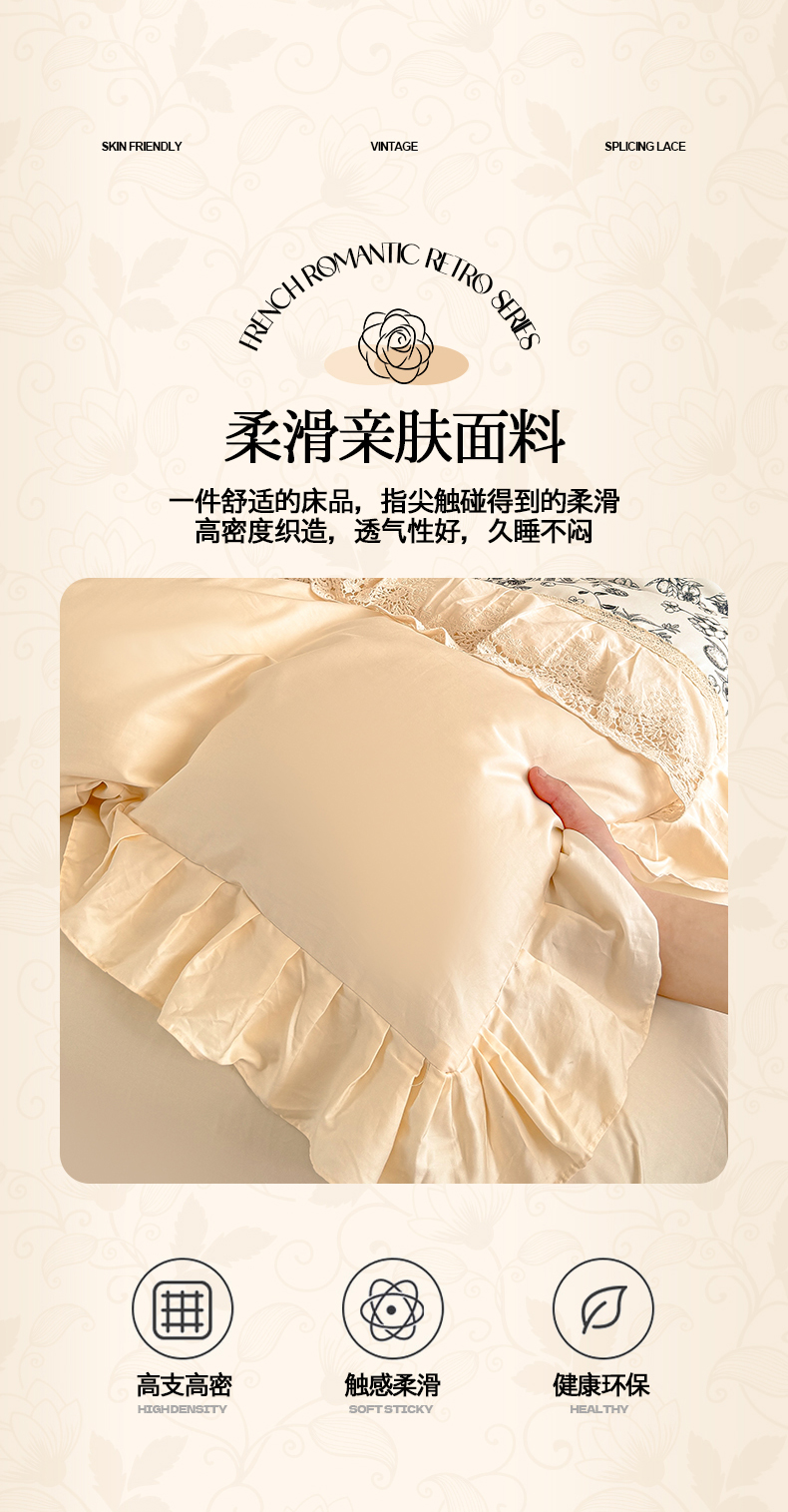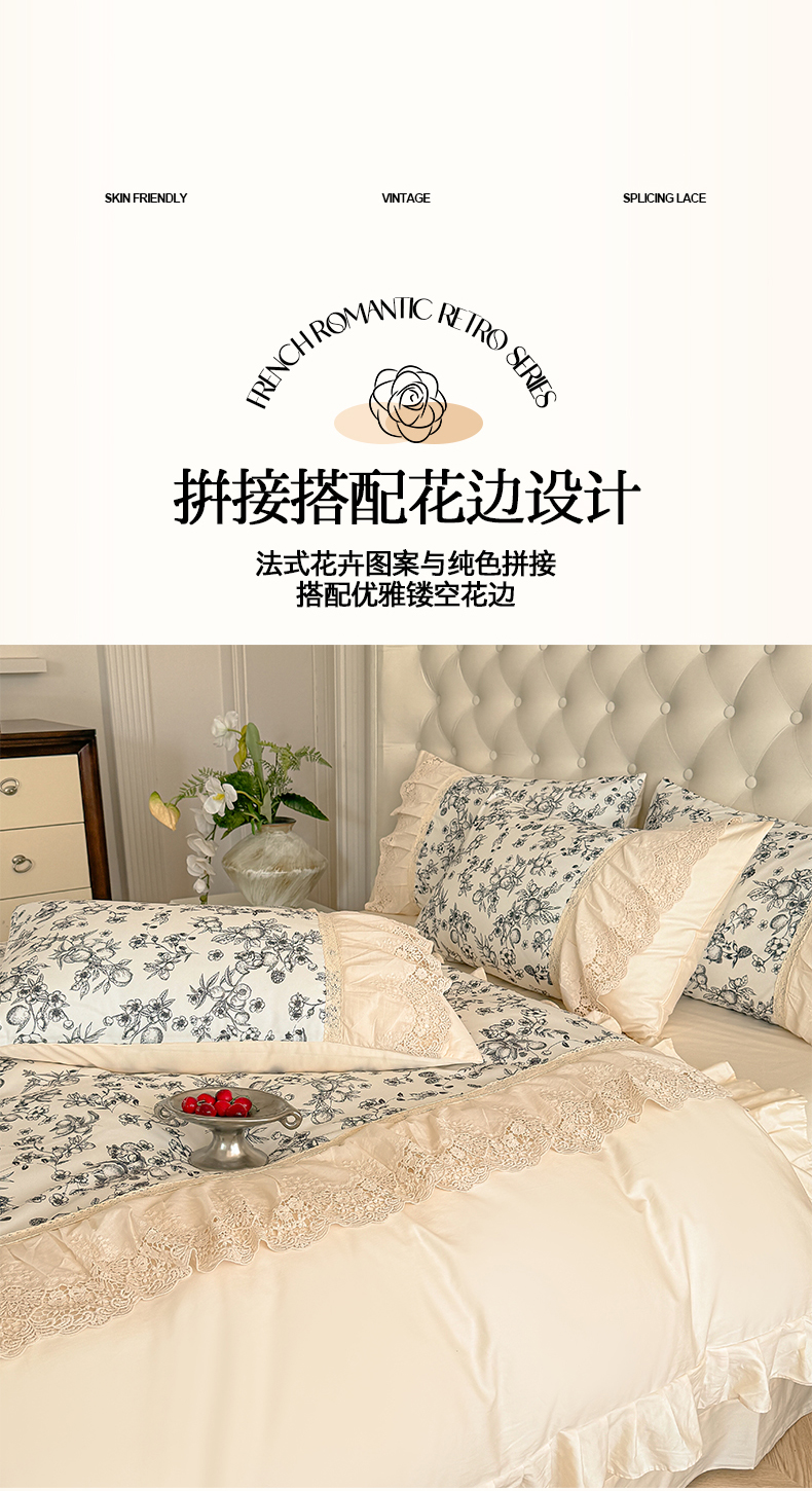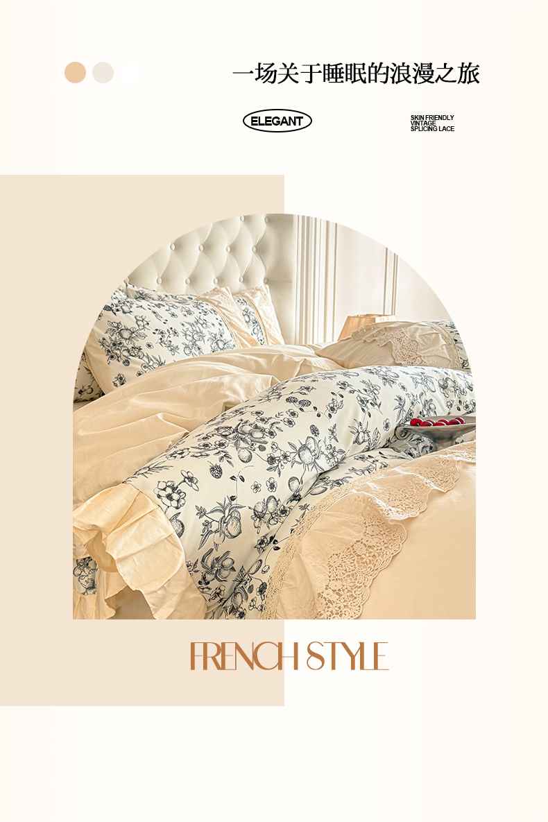 当前位置: 91家纺网 > 商品网购 > 床品套件 > 四件套 > 其它四件套 > 置顶家纺 2025秋冬新品法式亲肤花边拼接四件套 爱蜜莉-奶昔白