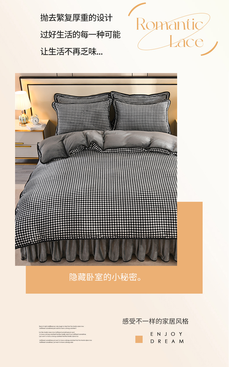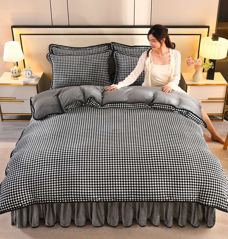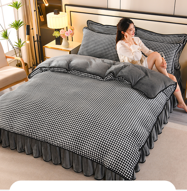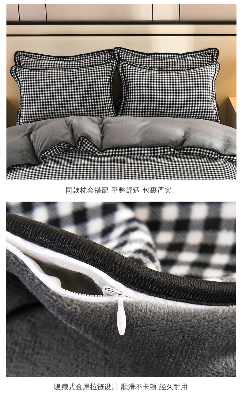 商品名称:2025新款高克重8斤金貂绒牛奶绒四件套 小格-黑