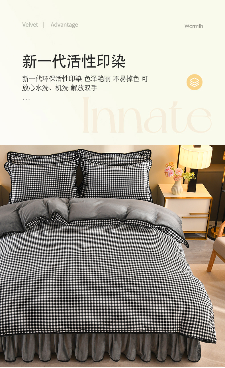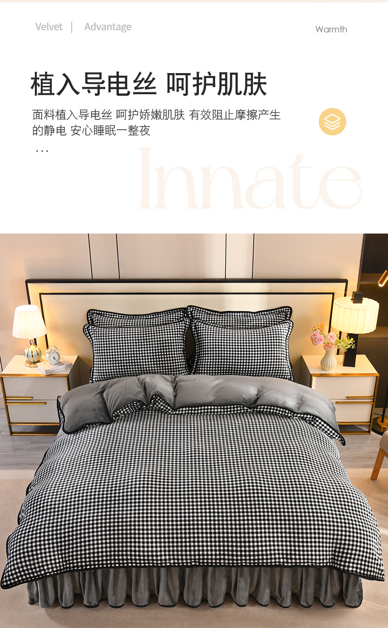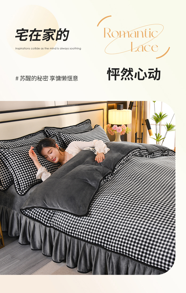 商品名称:2025新款高克重8斤金貂绒牛奶绒四件套 小格-黑