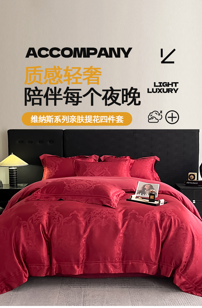 当前位置: 91家纺网 > 商品网购 > 床品套件 > 四件套 > 全棉普通四件套 > 置顶家纺 2025新款维纳斯系列亲肤提花四件套-实拍 维纳斯-温馨红
