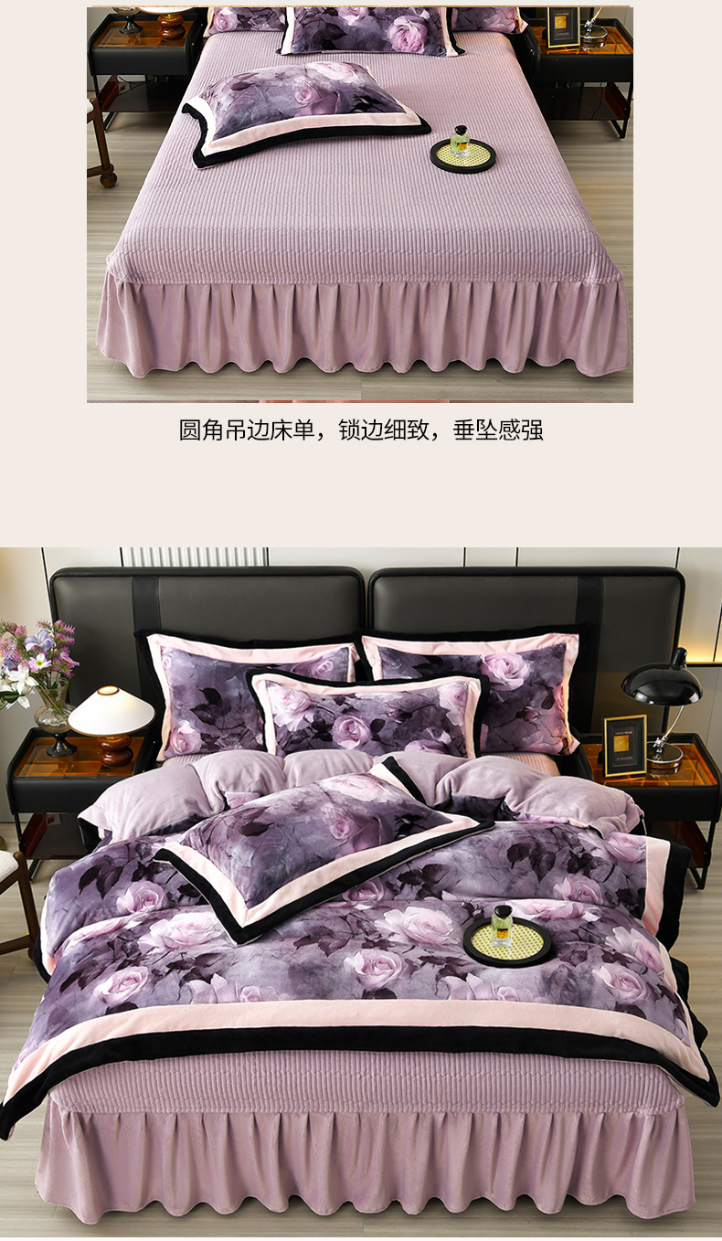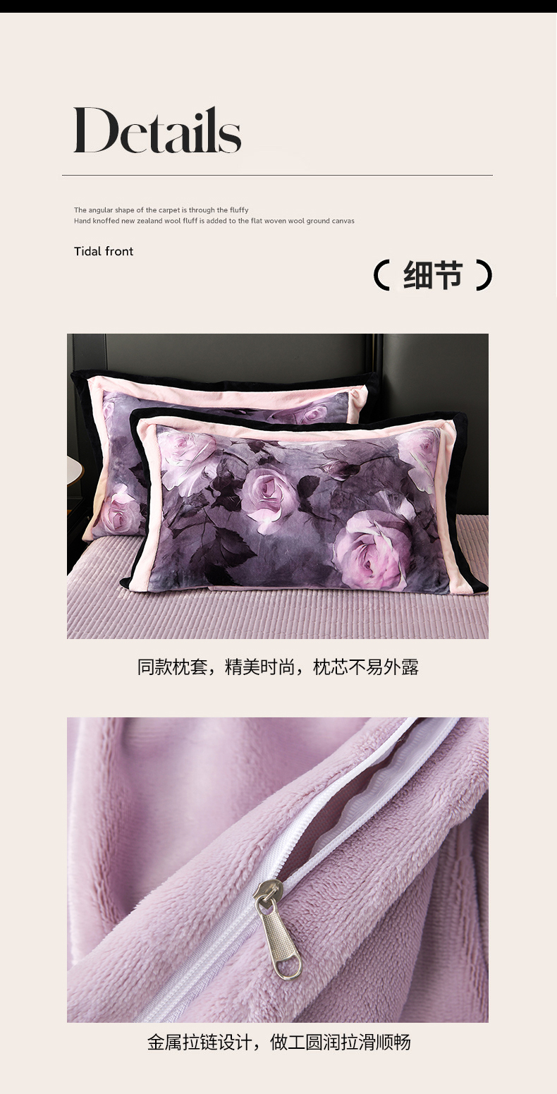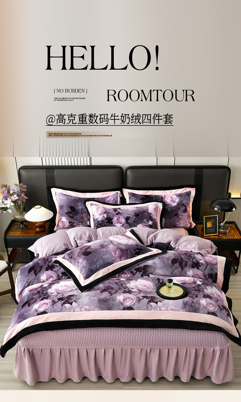当前位置: 91家纺网 > 商品网购 > 床品套件 > 四件套 > 牛奶绒四件套 > 馨梦缘 2025新款牛奶绒数码印花四件套 玫瑰时光-紫