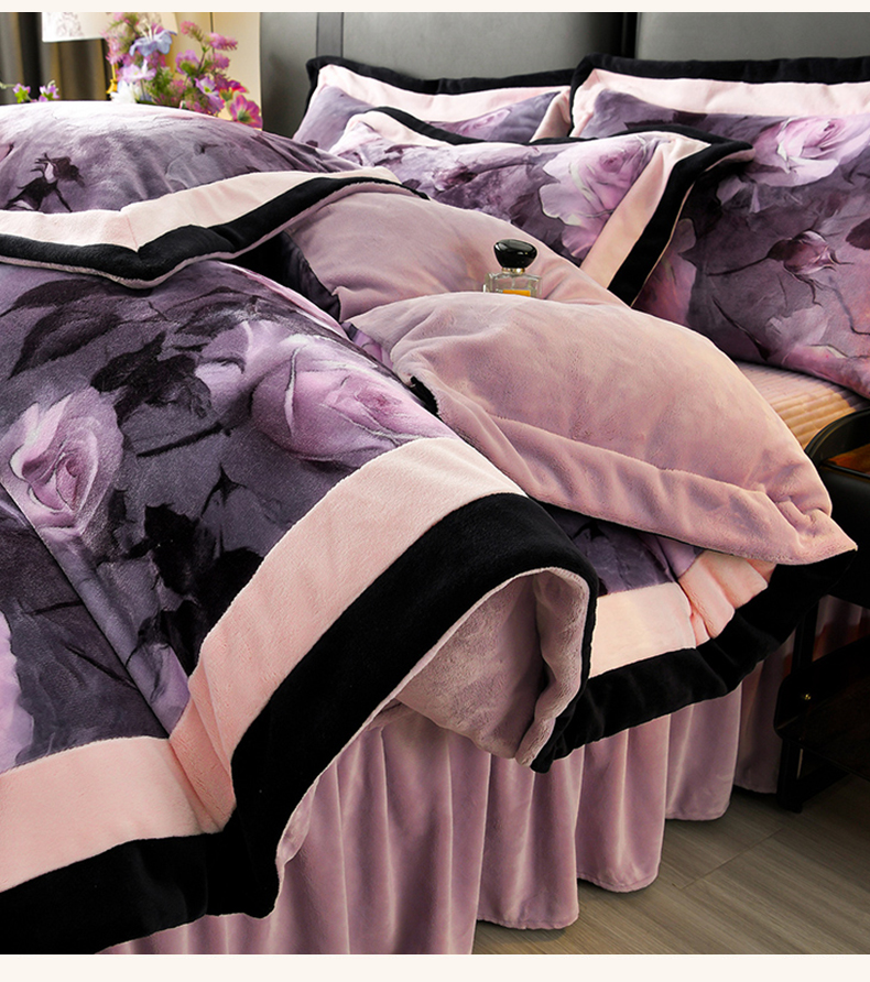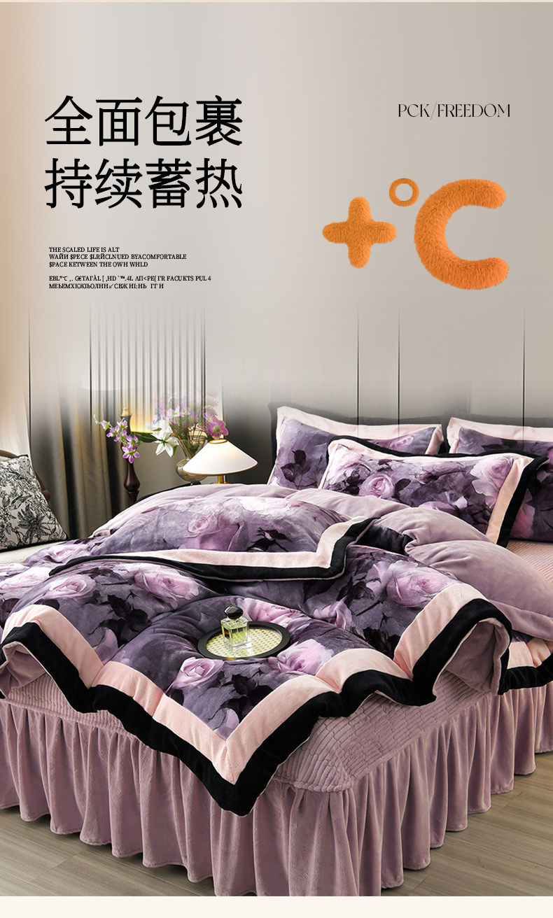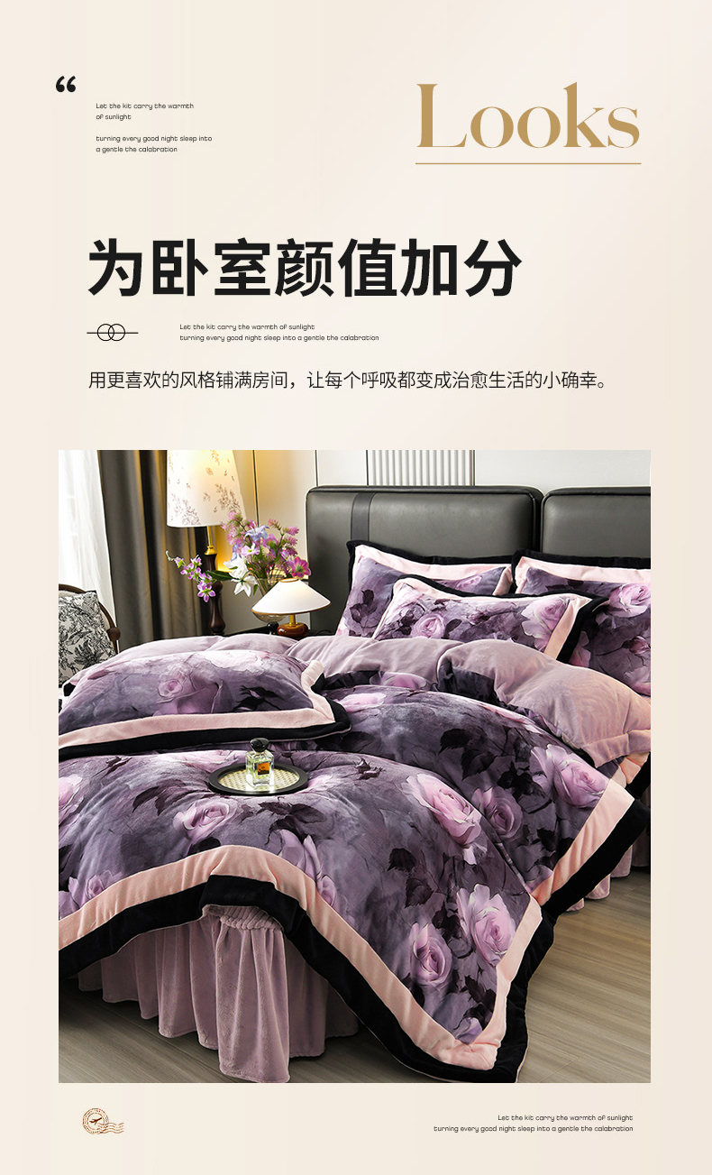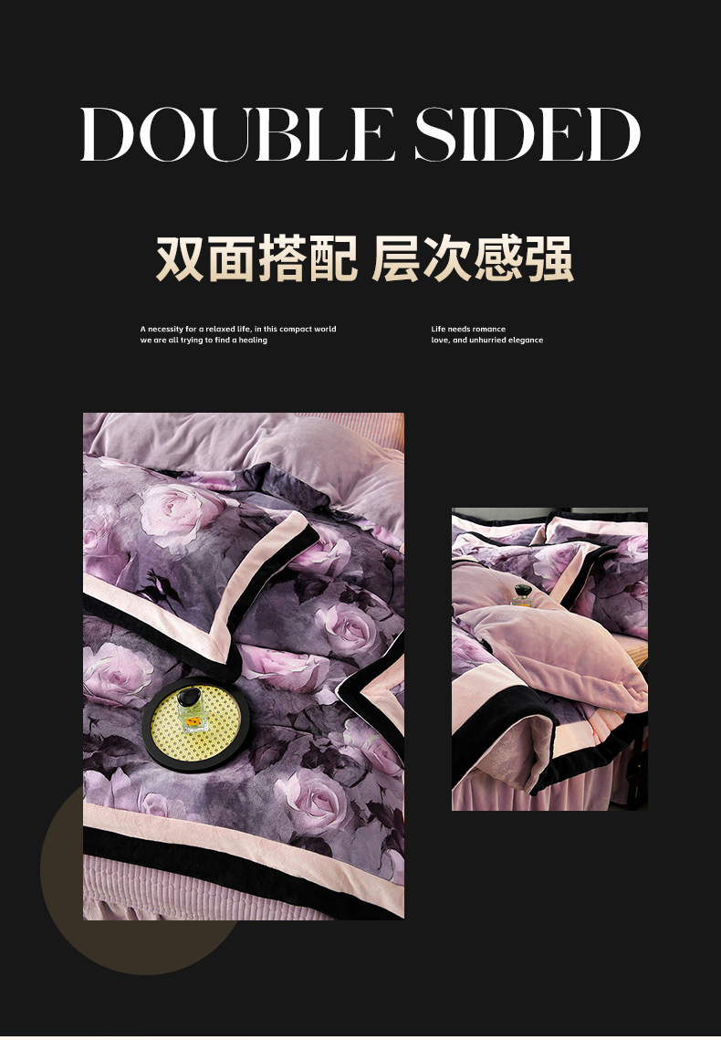 当前位置: 91家纺网 > 商品网购 > 床品套件 > 四件套 > 牛奶绒四件套 > 馨梦缘 2025新款牛奶绒数码印花四件套 玫瑰时光-紫