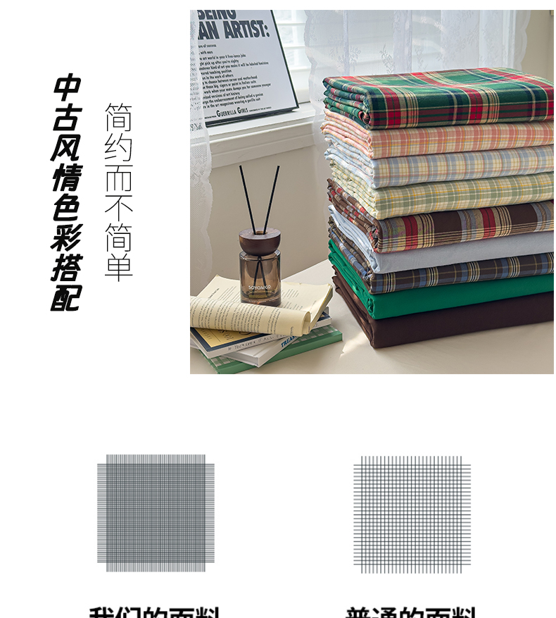 商品名称:对白 2025新款32支全棉色织水洗棉单品床单 西西里-绿格