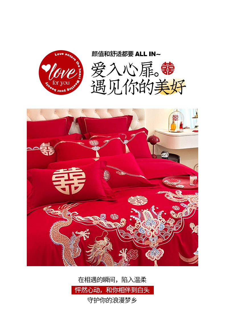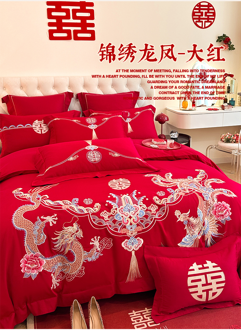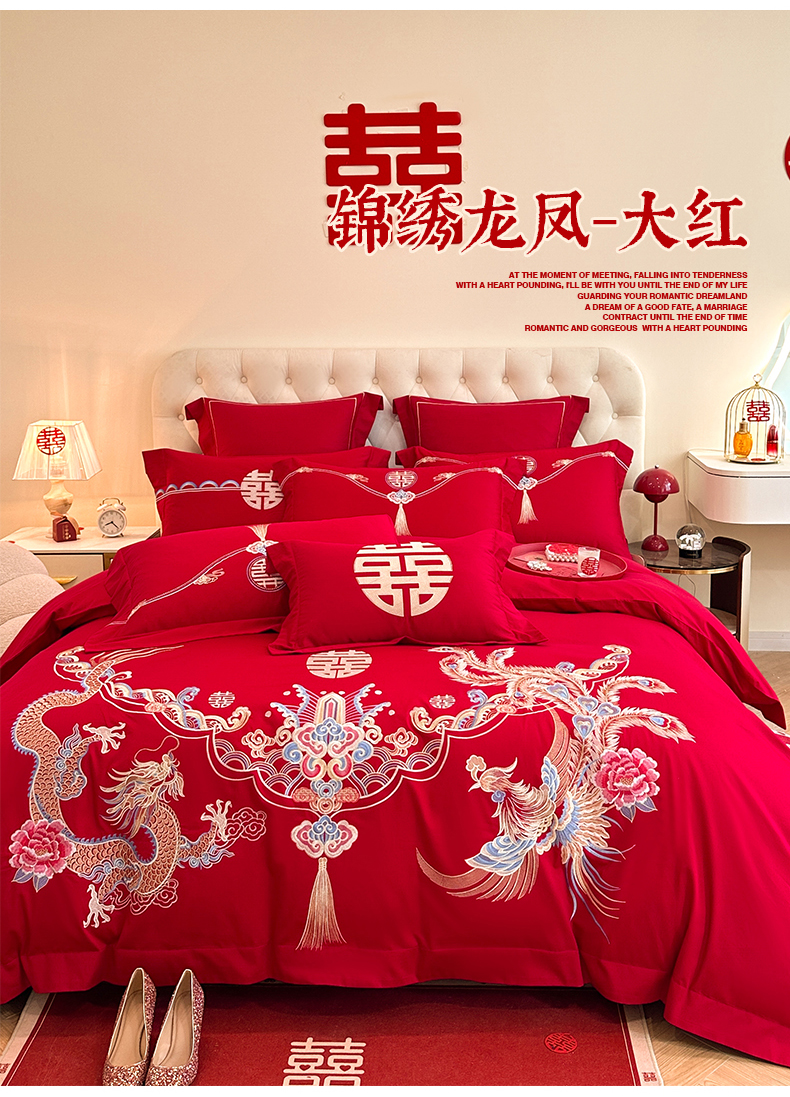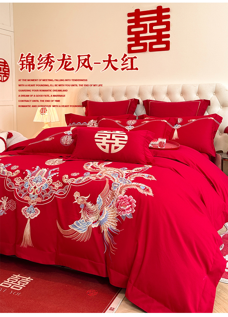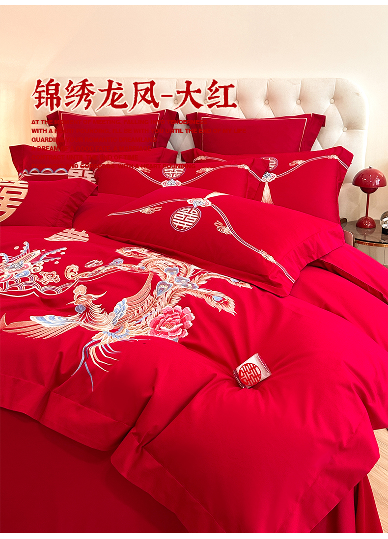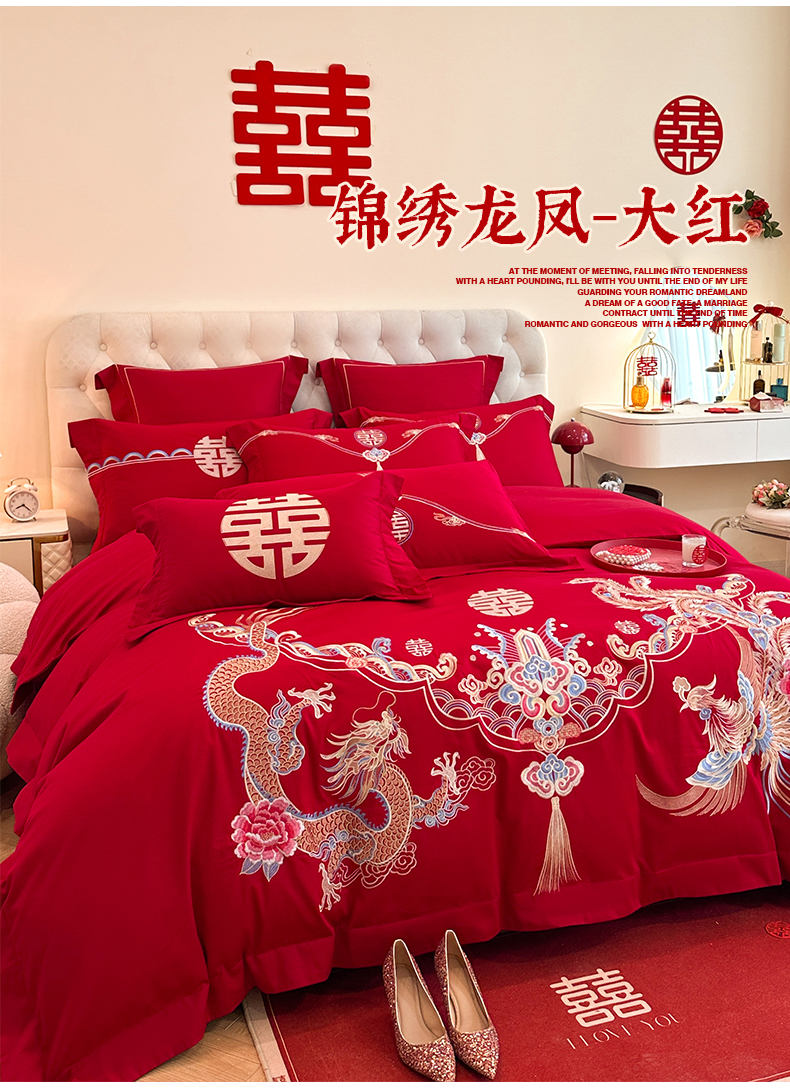 当前位置: 91家纺网 > 商品网购 > 床品套件 > 四件套 > 婚庆四件套 > 置顶家纺 2025新款亲肤刺绣婚庆磨毛四件套 锦绣龙凤-大红