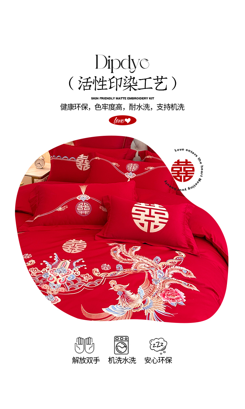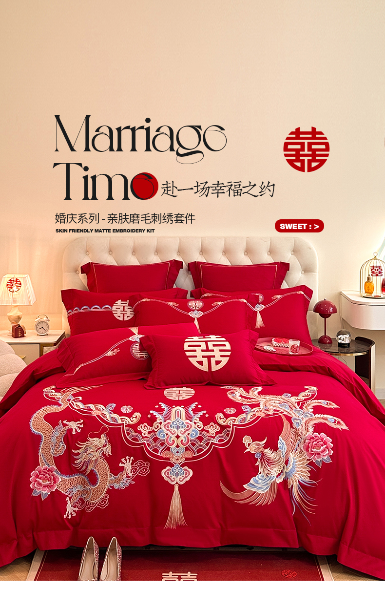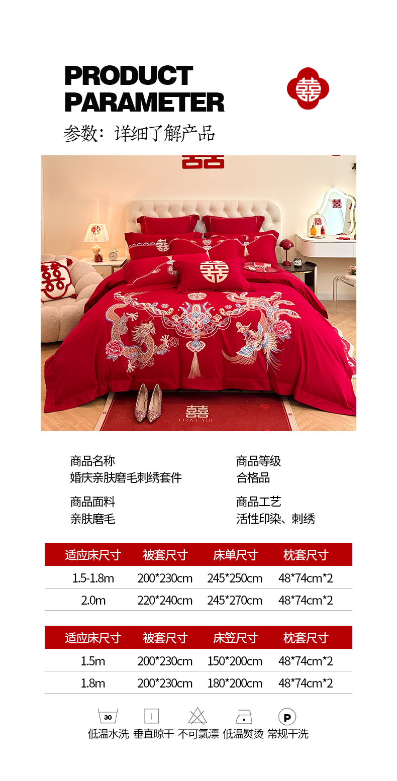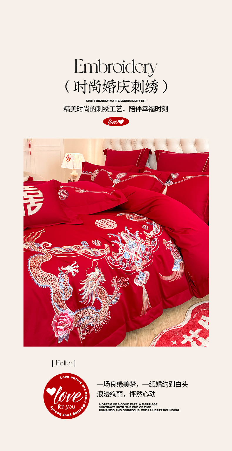 当前位置: 91家纺网 > 商品网购 > 床品套件 > 四件套 > 婚庆四件套 > 置顶家纺 2025新款亲肤刺绣婚庆磨毛四件套 锦绣龙凤-大红