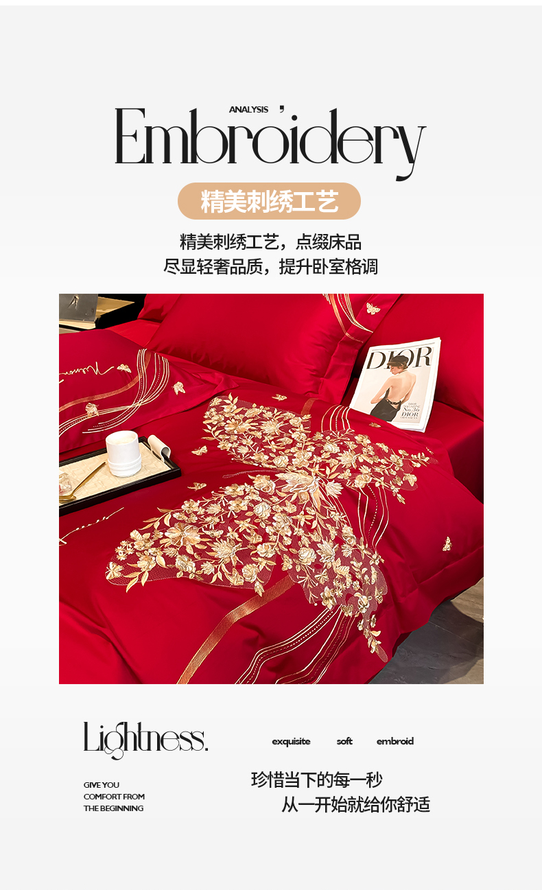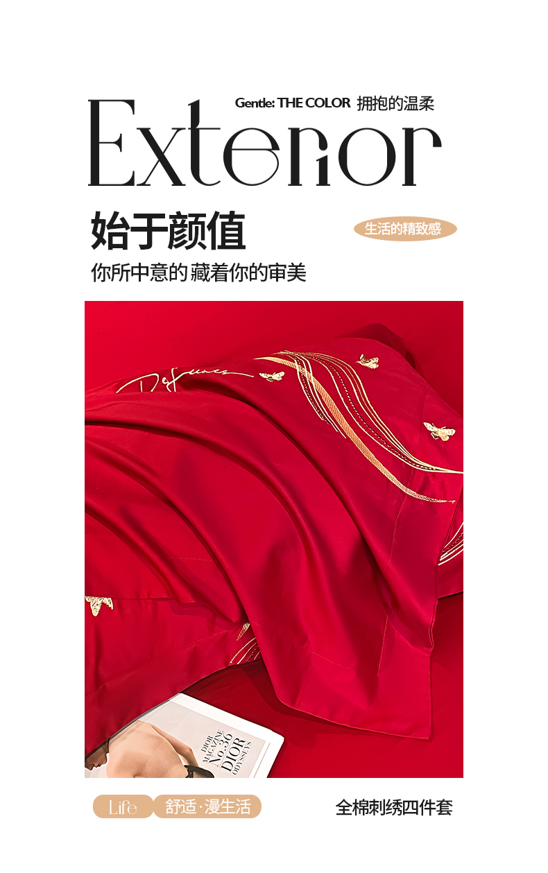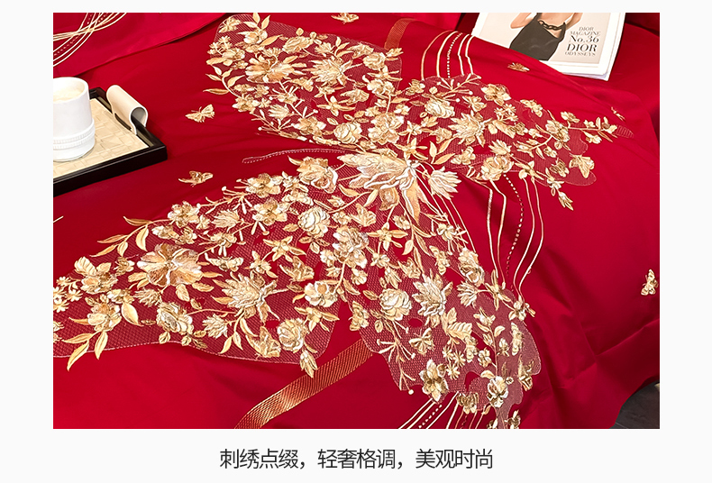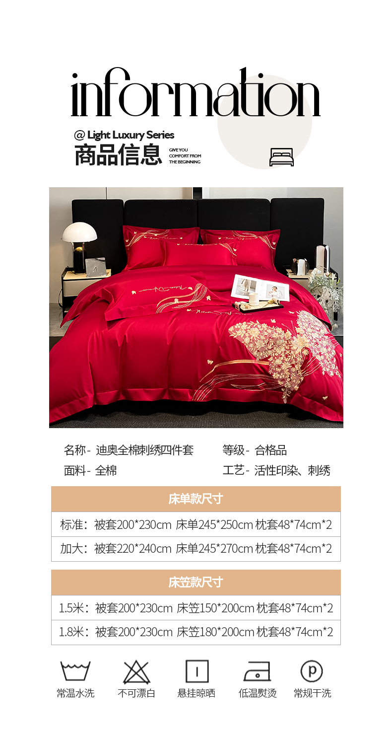 商品名称:置顶家纺 2025新款全棉纯棉刺绣四件套迪奥系列 迪奥-大红