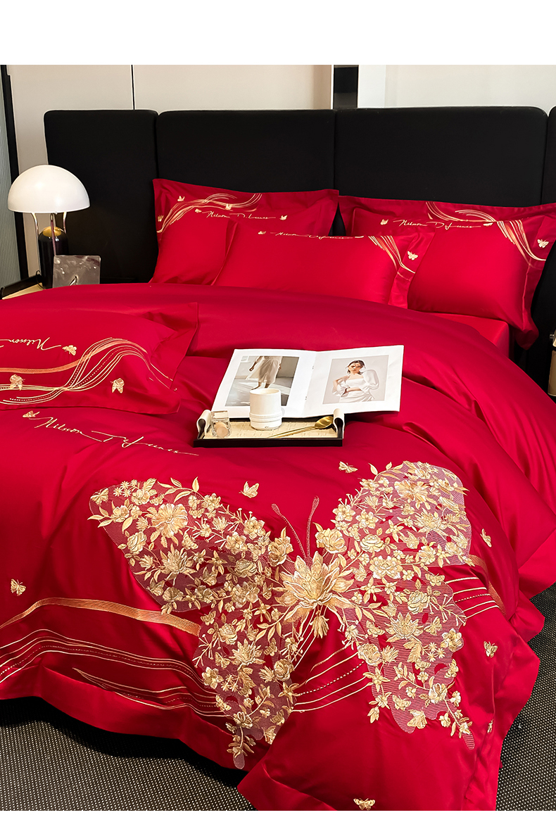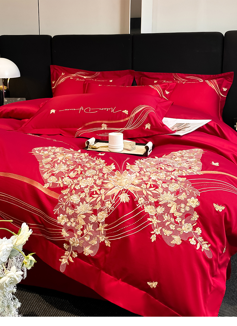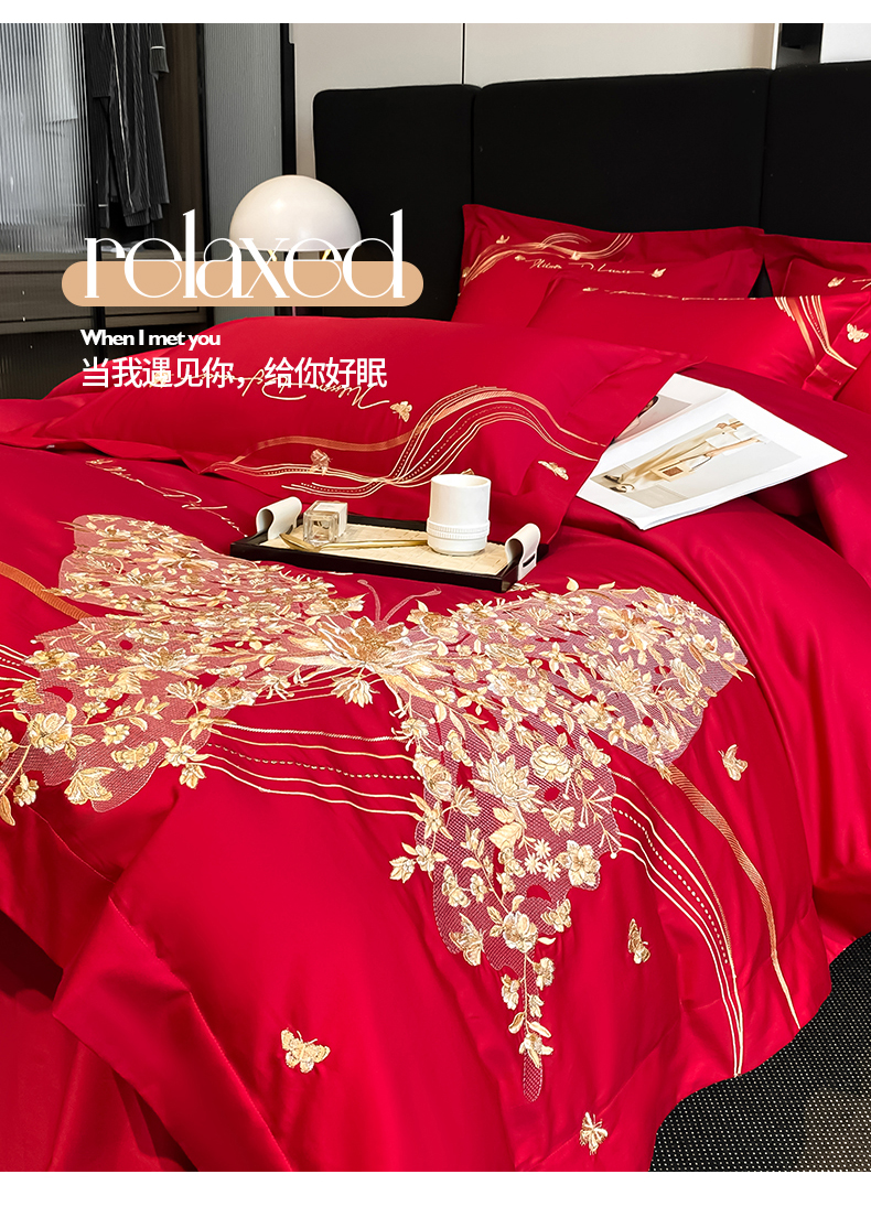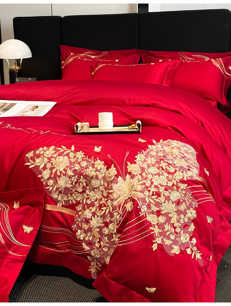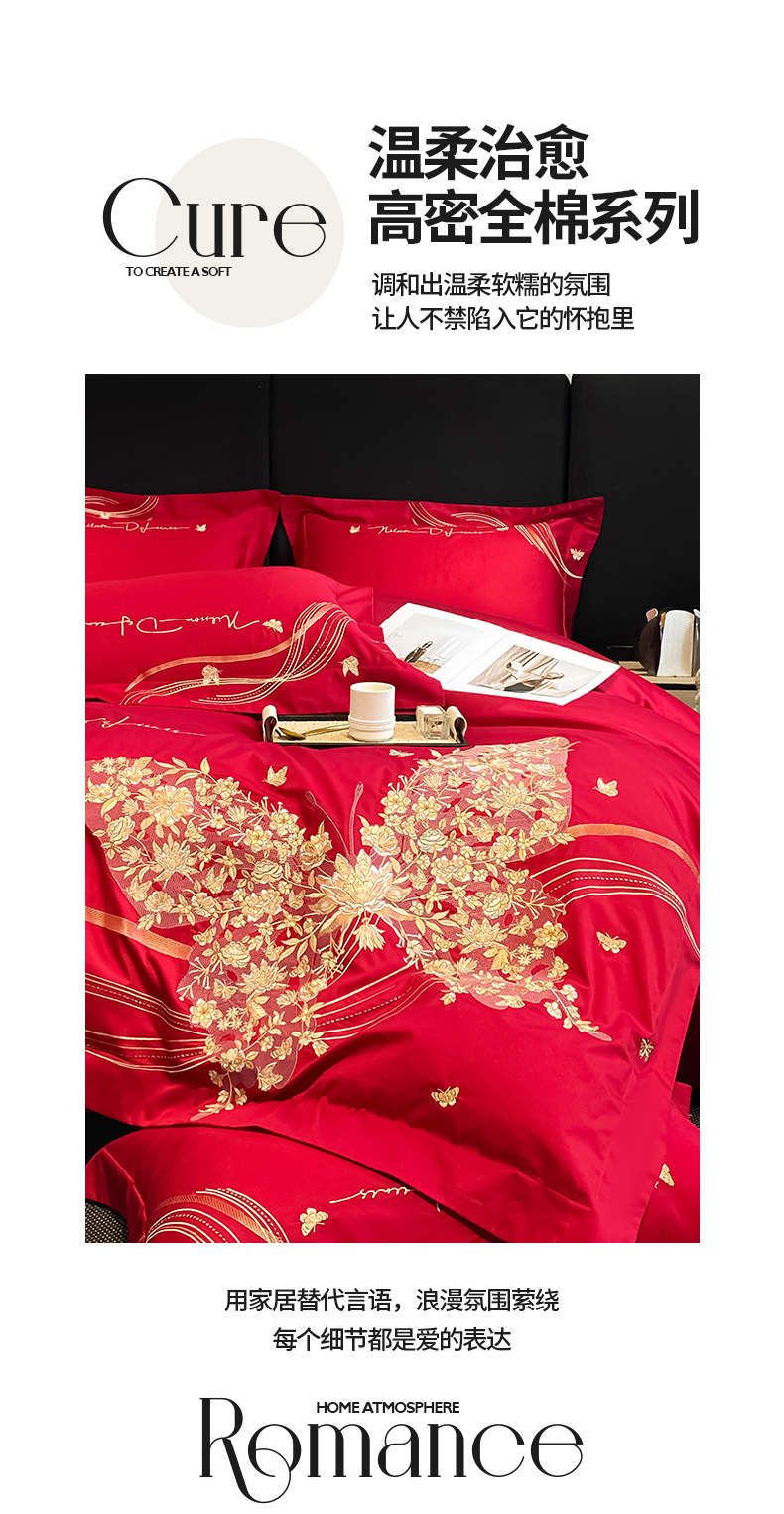 商品名称:置顶家纺 2025新款全棉纯棉刺绣四件套迪奥系列 迪奥-大红
