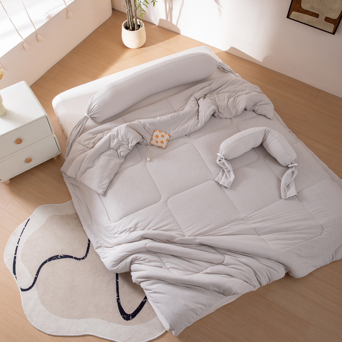 (总)LADYCOCO可可家居 2025新款三开口贡缎夹棉四件套 优易套/U易套 三开口被套,唯一专利发明单位,全球专利布局(控价不低于410元),浅粉+浅灰,浅紫+浅灰,浅灰+卡其