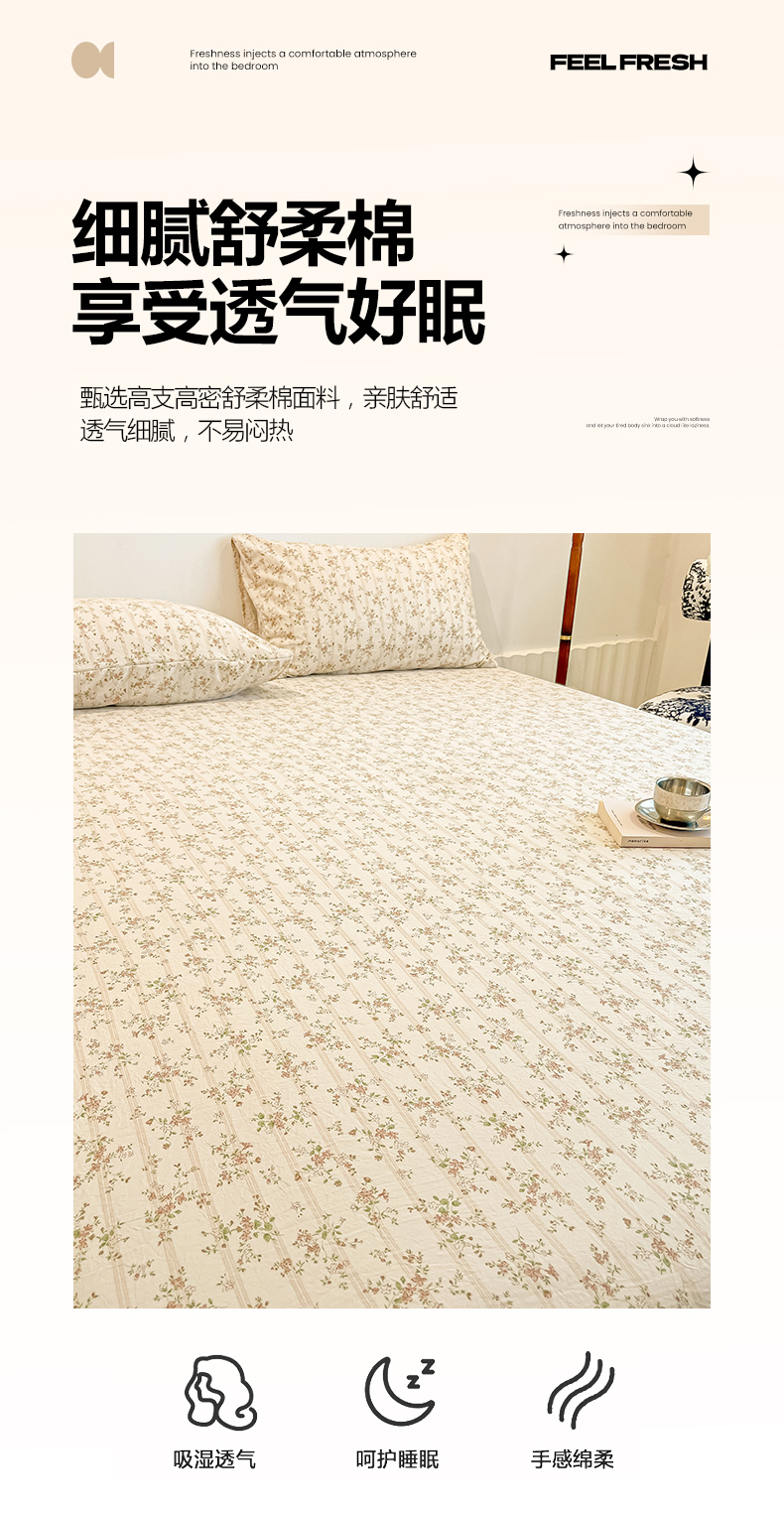 (总)多乐家纺 2025新款韩系花卉加厚舒柔棉印花单床笠 床笠三件套,暗香,秘境,繁花,玫瑰,南城旧事,茶颜悦色-黄,春日,茶颜悦色-绿,山野红,山野灰