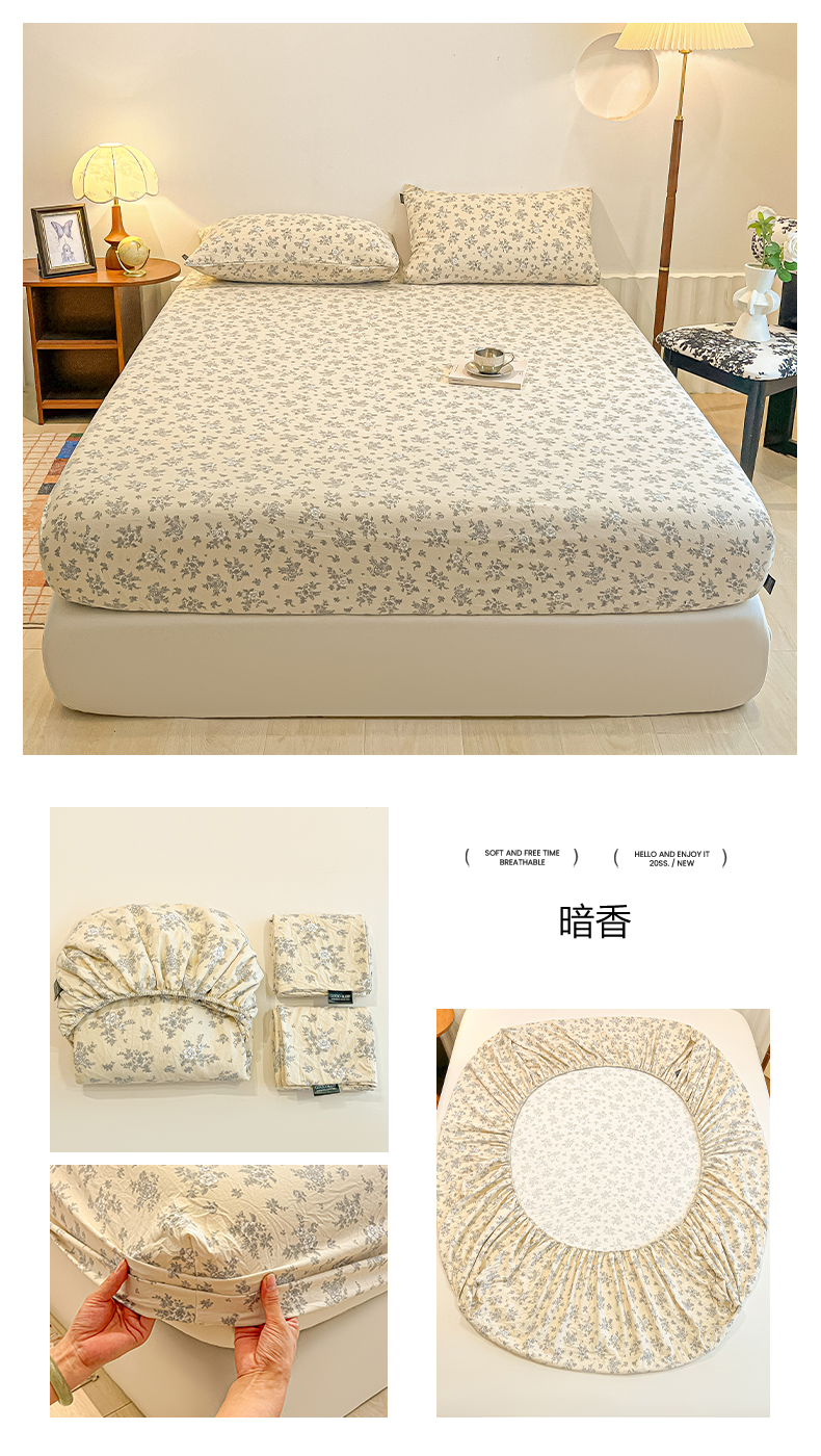 (总)多乐家纺 2026新款韩系花卉加厚舒柔棉印花单床笠 床笠三件套,暗香,茶颜悦色-黄,茶颜悦色-绿,春日,繁花,玫瑰,秘境,南城旧事,山野红,山野灰