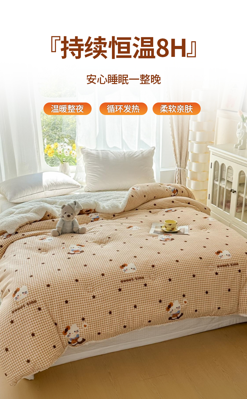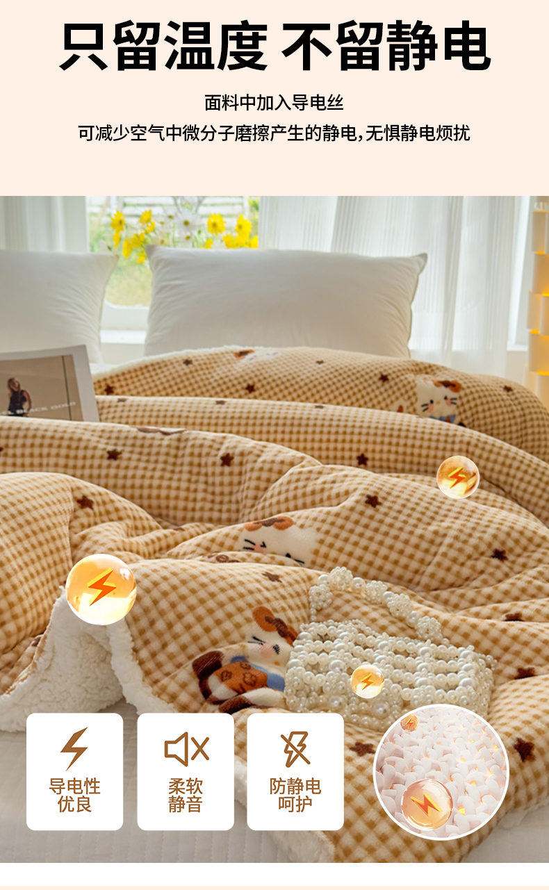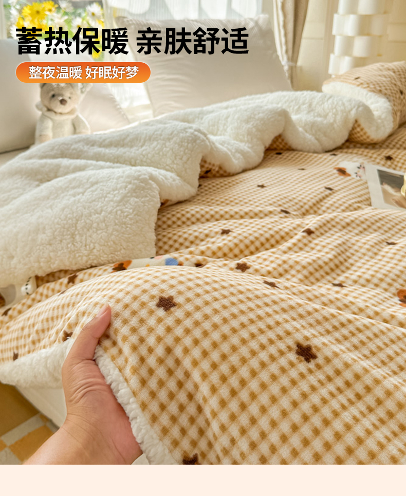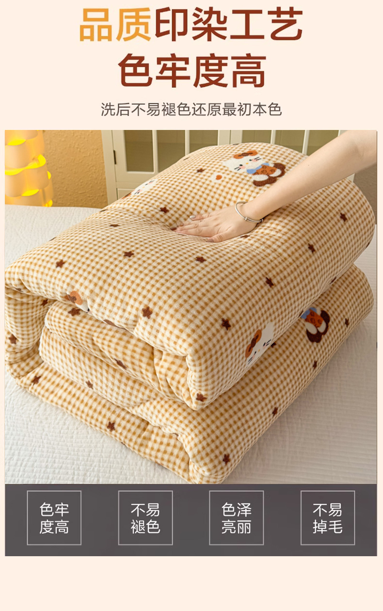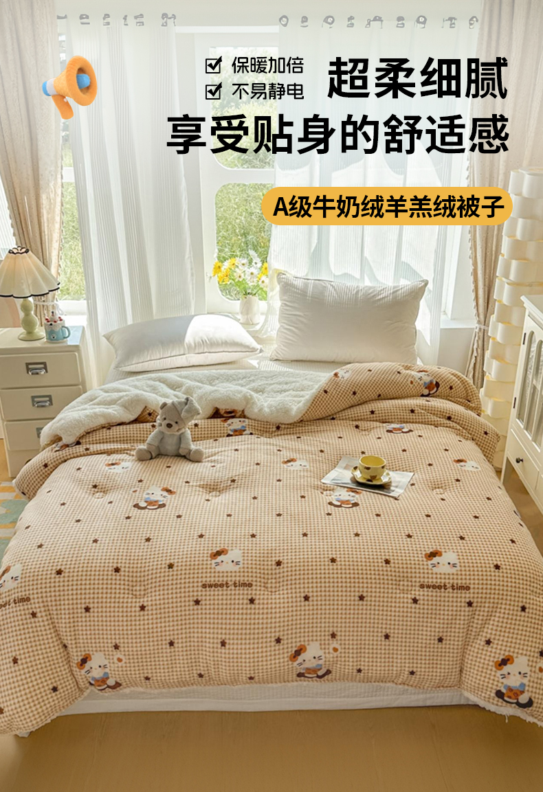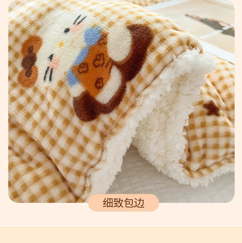 商品名称:爱彼家纺 2025新款奶油风羊羔绒+牛奶绒可爱卡通被子被芯秋被冬被被子被芯-直播热门款 奶咖小猫