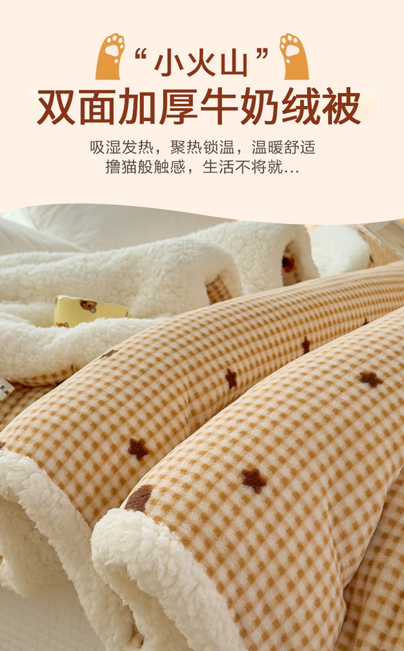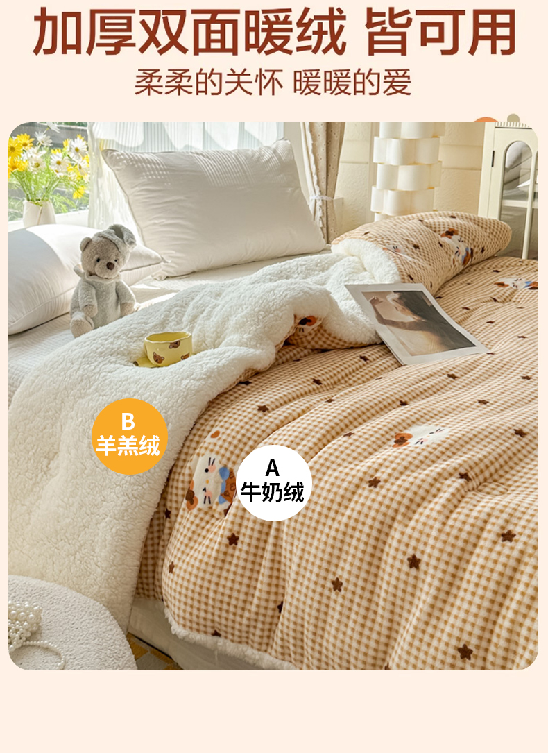 爱彼家纺 2025新款奶油风羊羔绒+牛奶绒可爱卡通被子被芯秋被冬被被子被芯-直播热门款 奶咖小猫