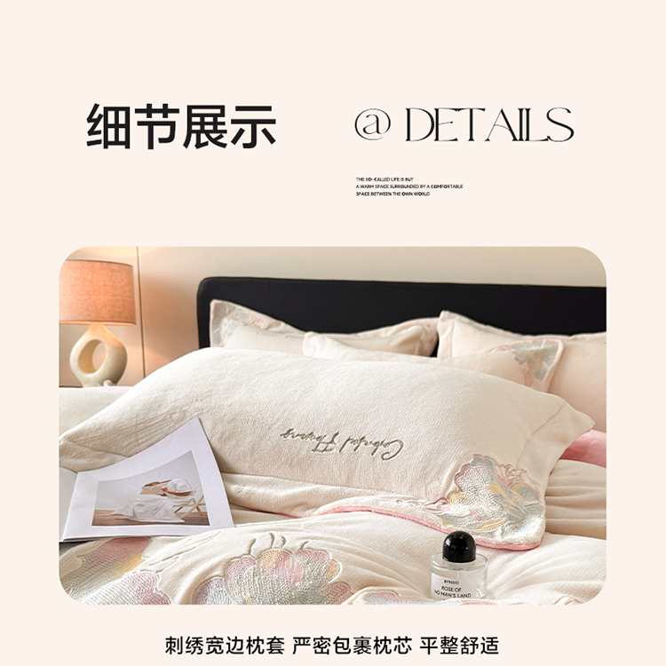 商品名称:(总)2025新款牛奶绒刺绣工艺高克重四件套-安娜
