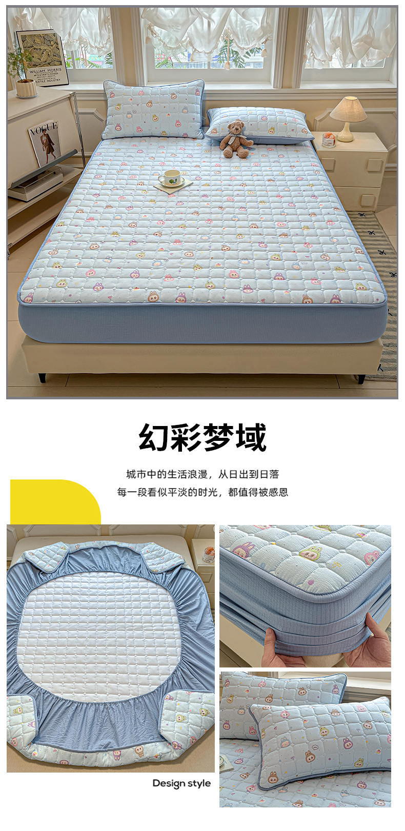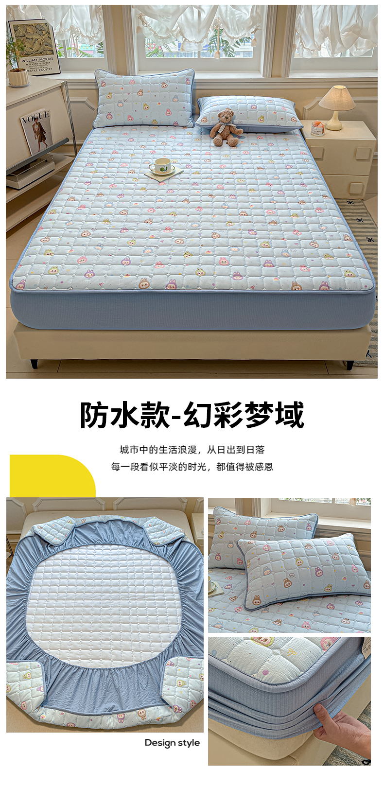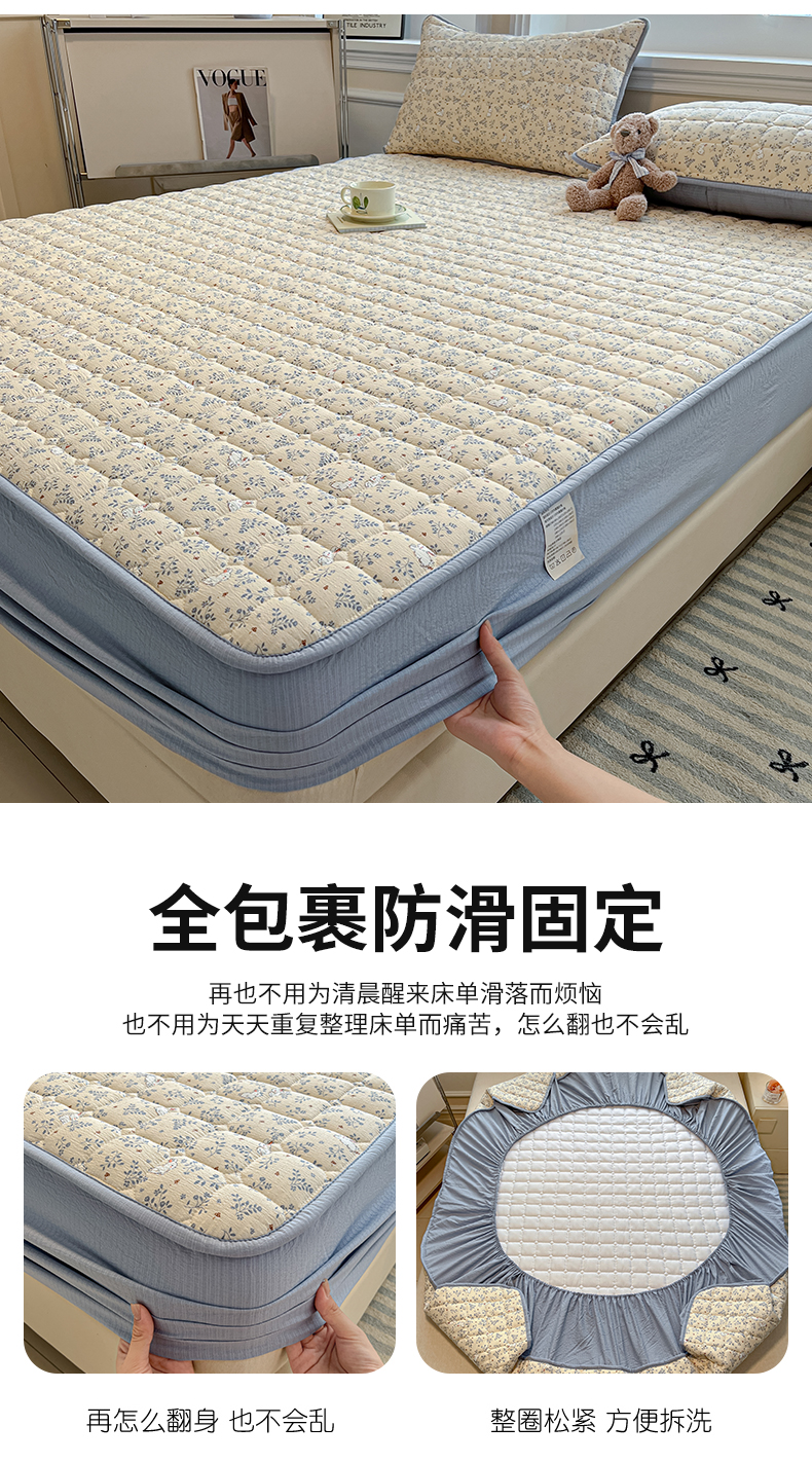 • 91家纺网 家纺一手货源 找家纺 九亭家纺 2025新款A类皱皱纱印花防水夹棉床笠 防水款-星眠之榻