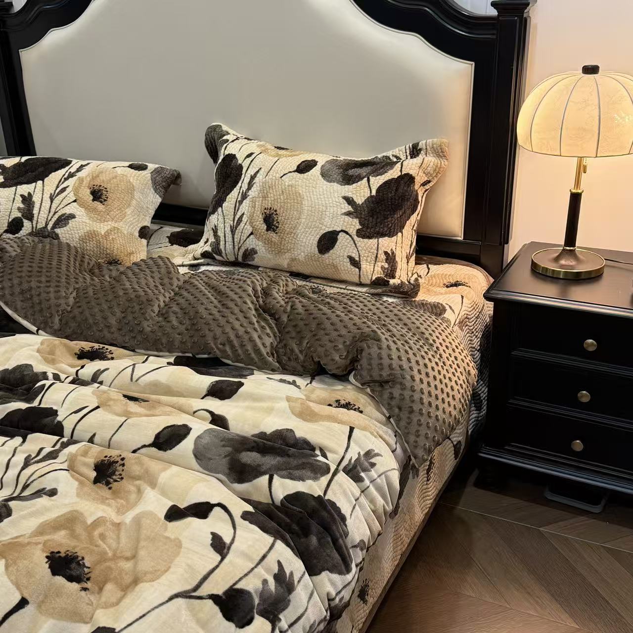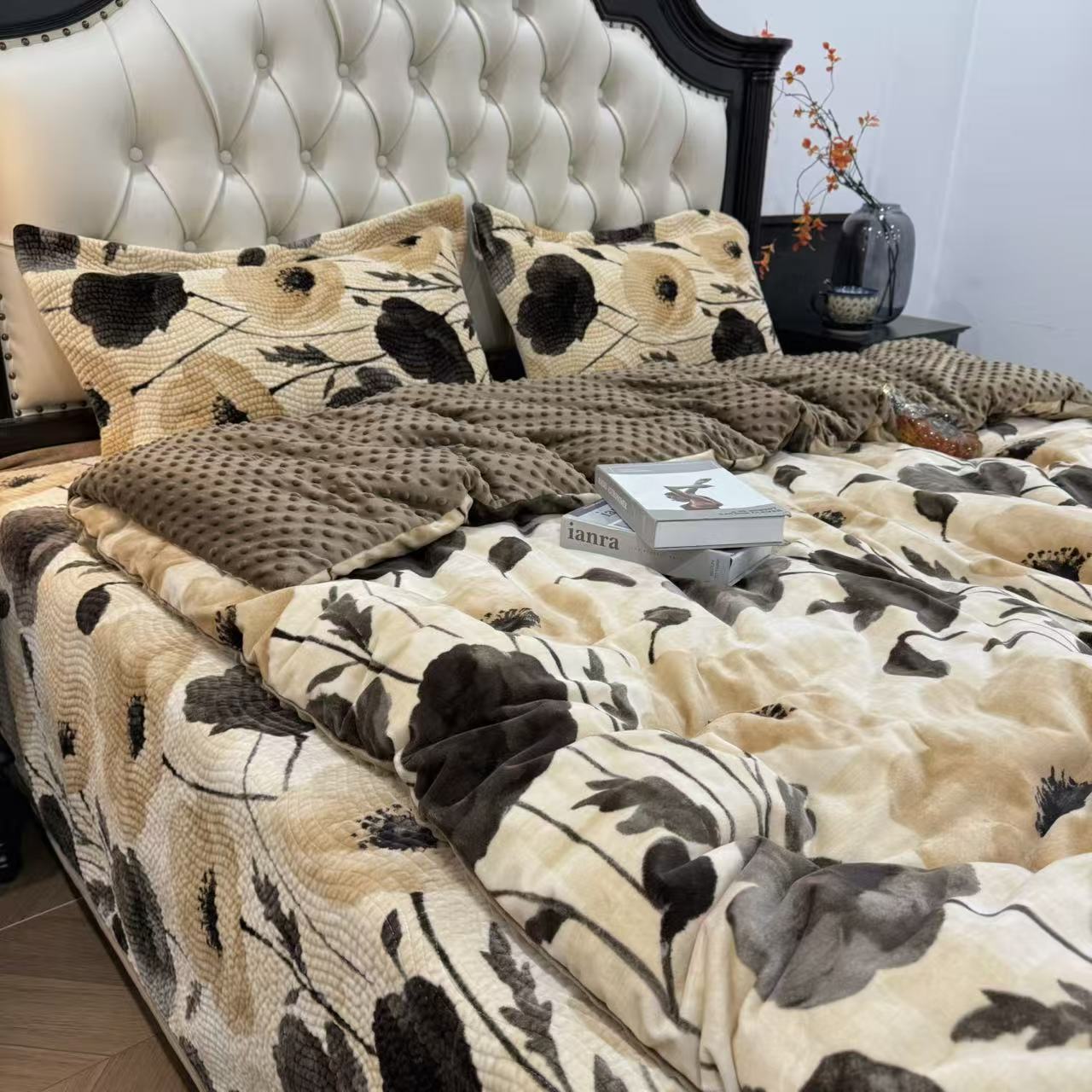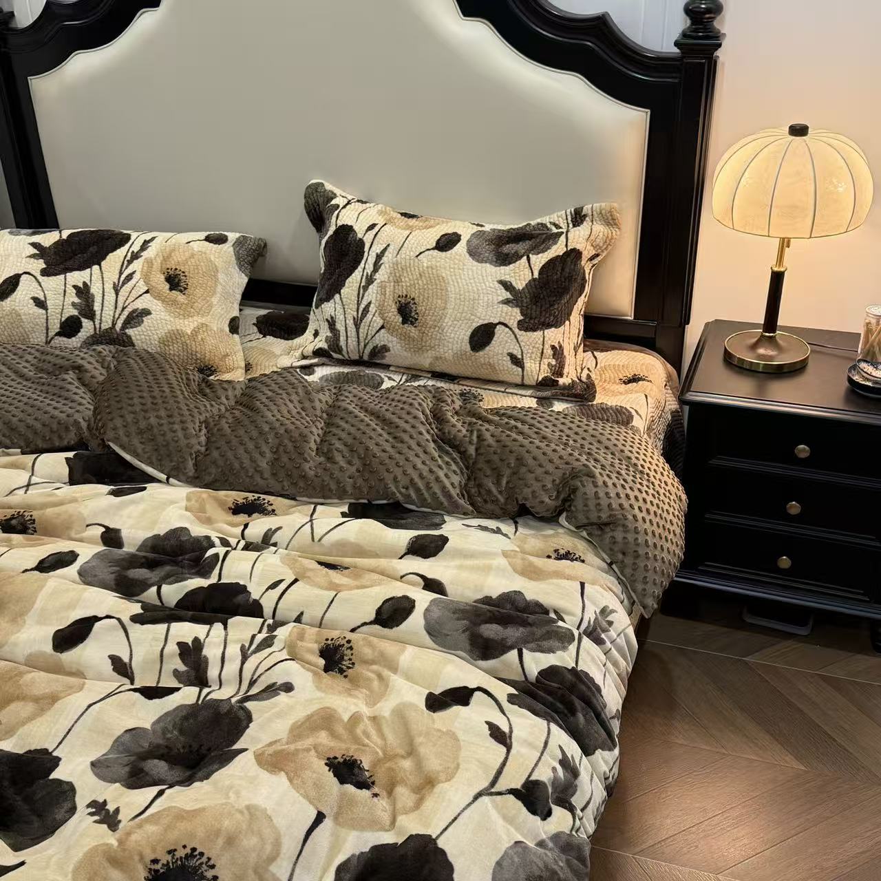 床盖工厂店 2025新款宝宝绒床盖四件套 雅韵花影,雅韵花影