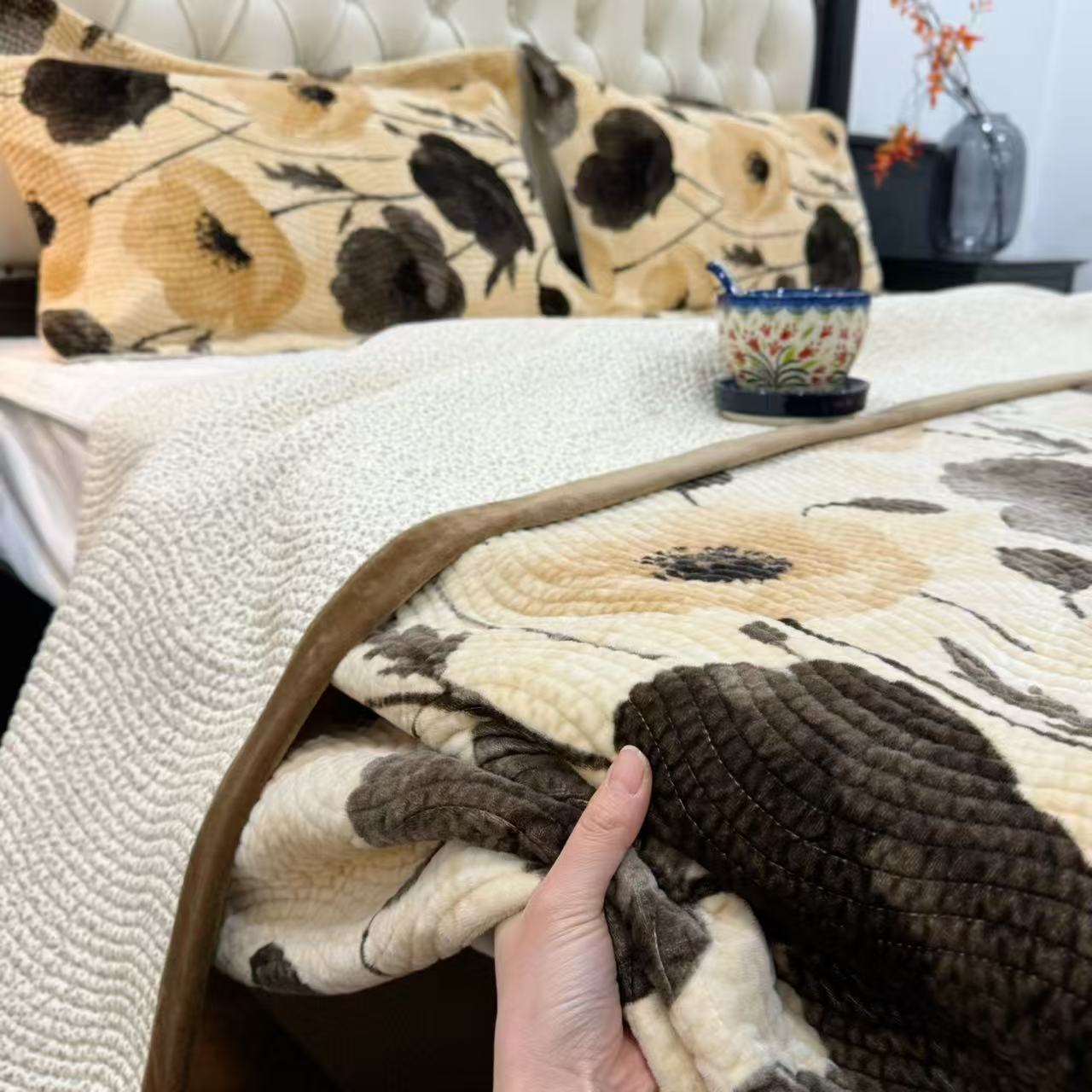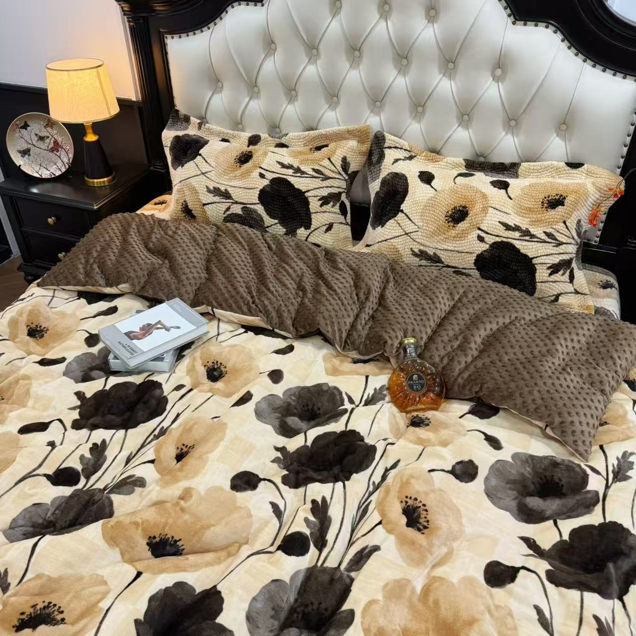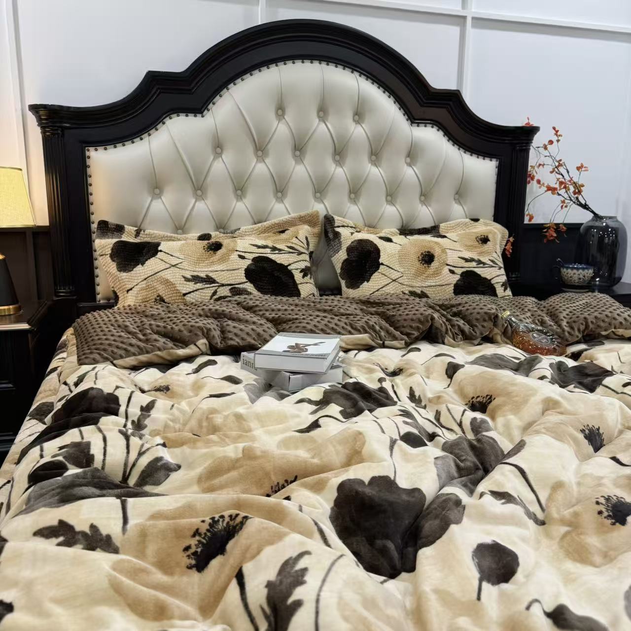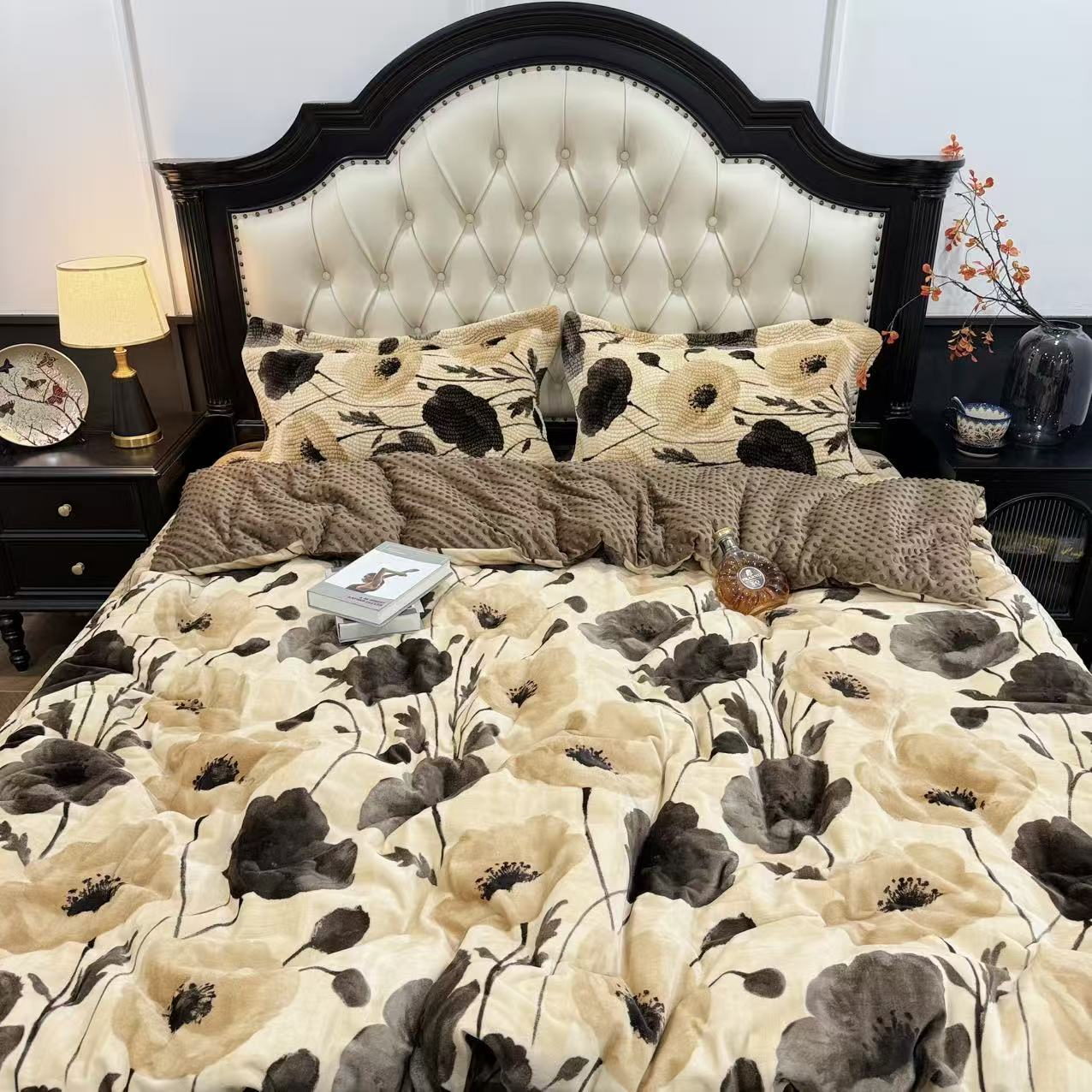 床盖工厂店 2025新款宝宝绒床盖四件套 雅韵花影,雅韵花影