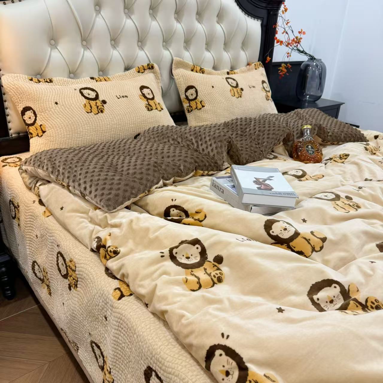 床盖工厂店 2025新款宝宝绒床盖四件套 小狮子,小狮子